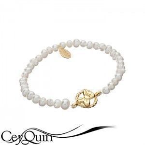 - Pulsera fabricada en plata bañada en oro y perlas naturales.