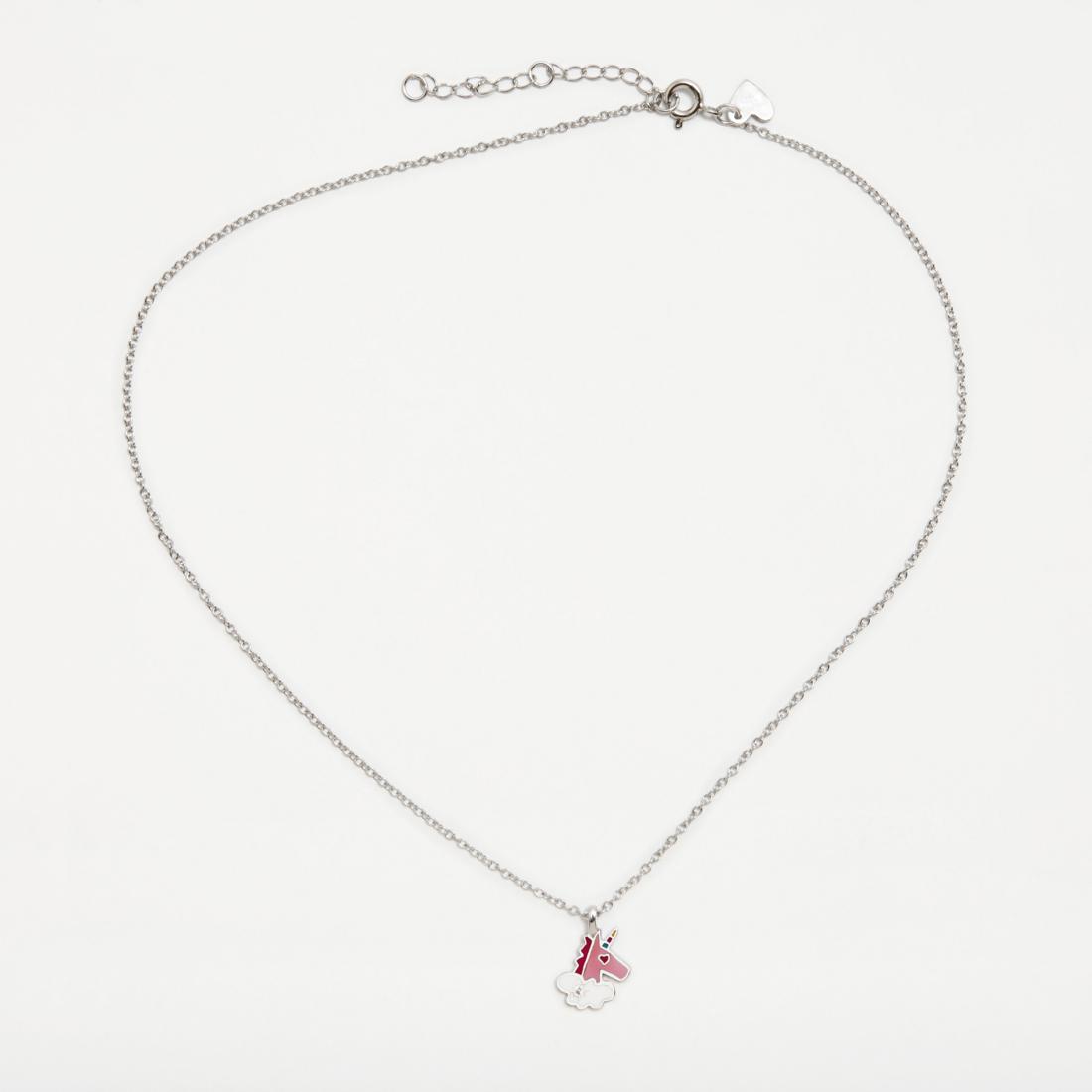Colgante de plata de ley con baño de rodio, esmalte circonita. Tiene cadena de extensión.