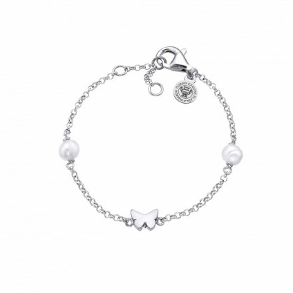 Pulsera Duran Exquse fabricada en plata 1ª ley rodiada, trae una mariposa de plata y dos perlitas blanca..
