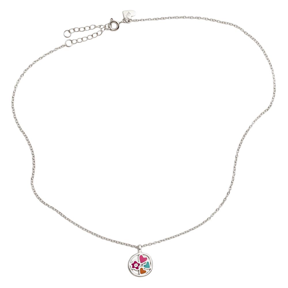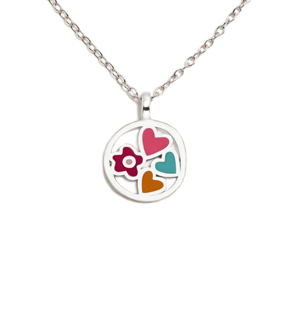 Colgante de plata de ley con baño de rodio y esmalte. Tiene cadena de extensión