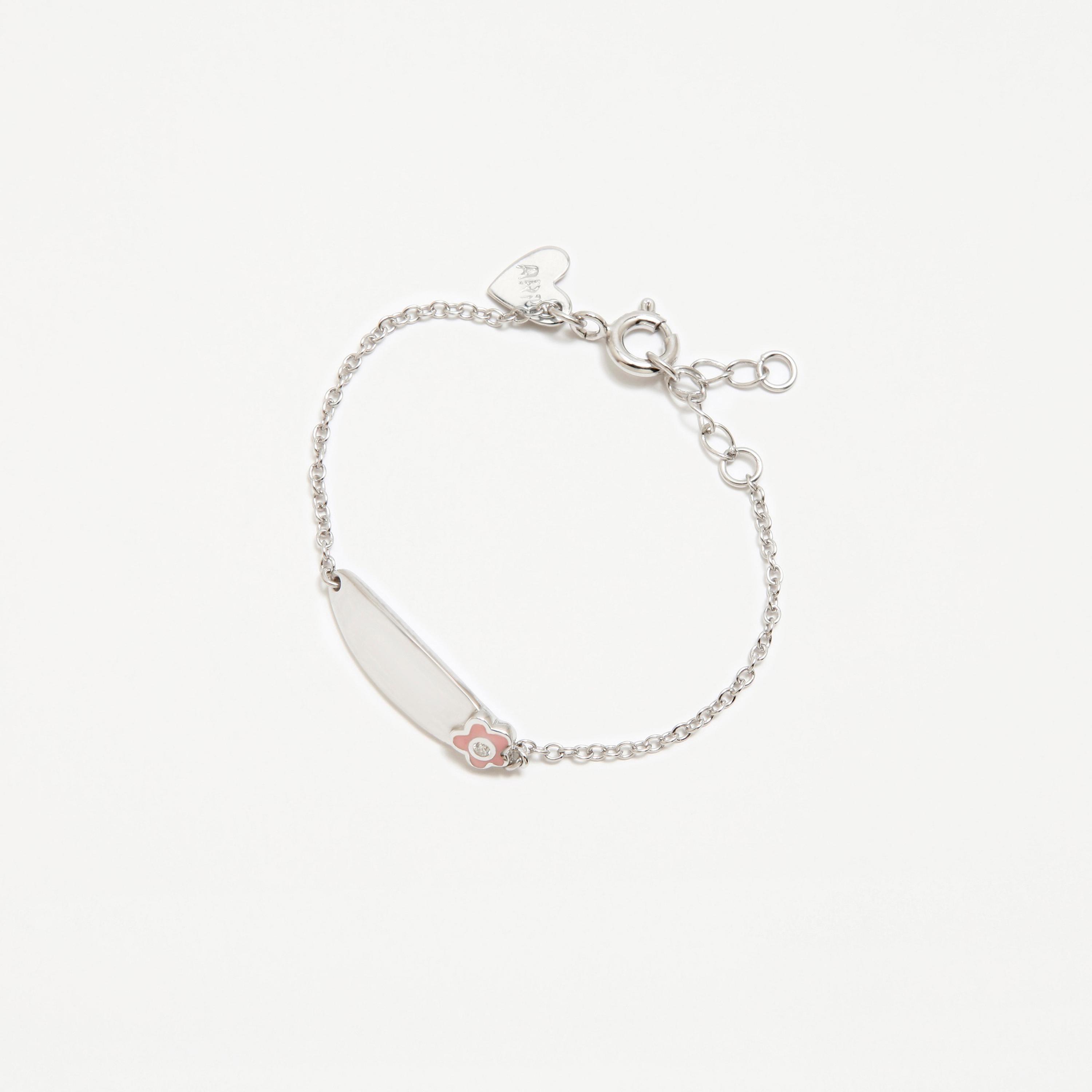 Pulsera de plata de ley y baño de rodio, con esmalte, perlas naturales, cirtconitas y cadena de extensión.