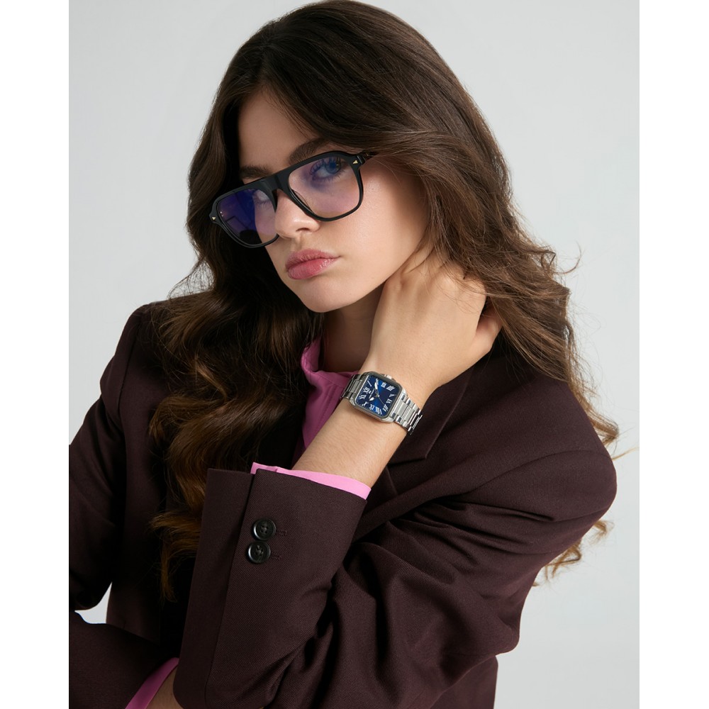 Estilo y funcionalidad se unen en este reloj de mujer, con caja y brazalete de acero que aportan resistencia y elegancia. La esfera azul con números romanos y las agujas horarias en color plata aseguran una lectura clara y sofisticada, mientras que el cristal mineral protege la pieza, convirtiéndola en un accesorio perfecto para completar cualquier look con un toque clásico y atemporal.