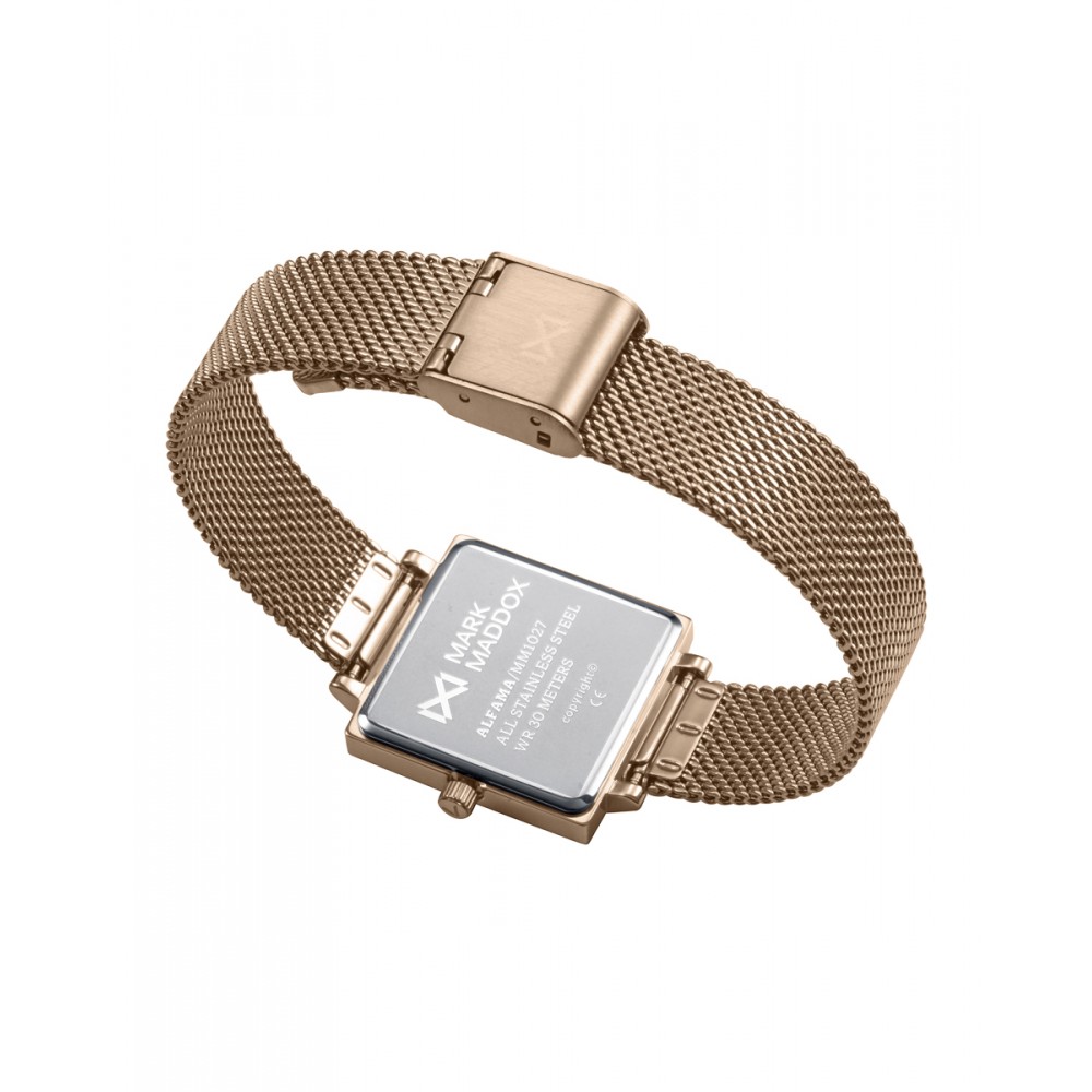 Elegancia femenina en un reloj de dos agujas con caja y malla milanesa en acero Ip rosa. Su esfera rosa aporta delicadeza y estilo, combinando a la perfección con las agujas horarias en Ip rosa que resaltan con sutileza. Equipado con cristal mineral resistente, este modelo Mark Maddox es ideal para mujeres que buscan un complemento refinado, moderno y lleno de personalidad para lucir cada día.