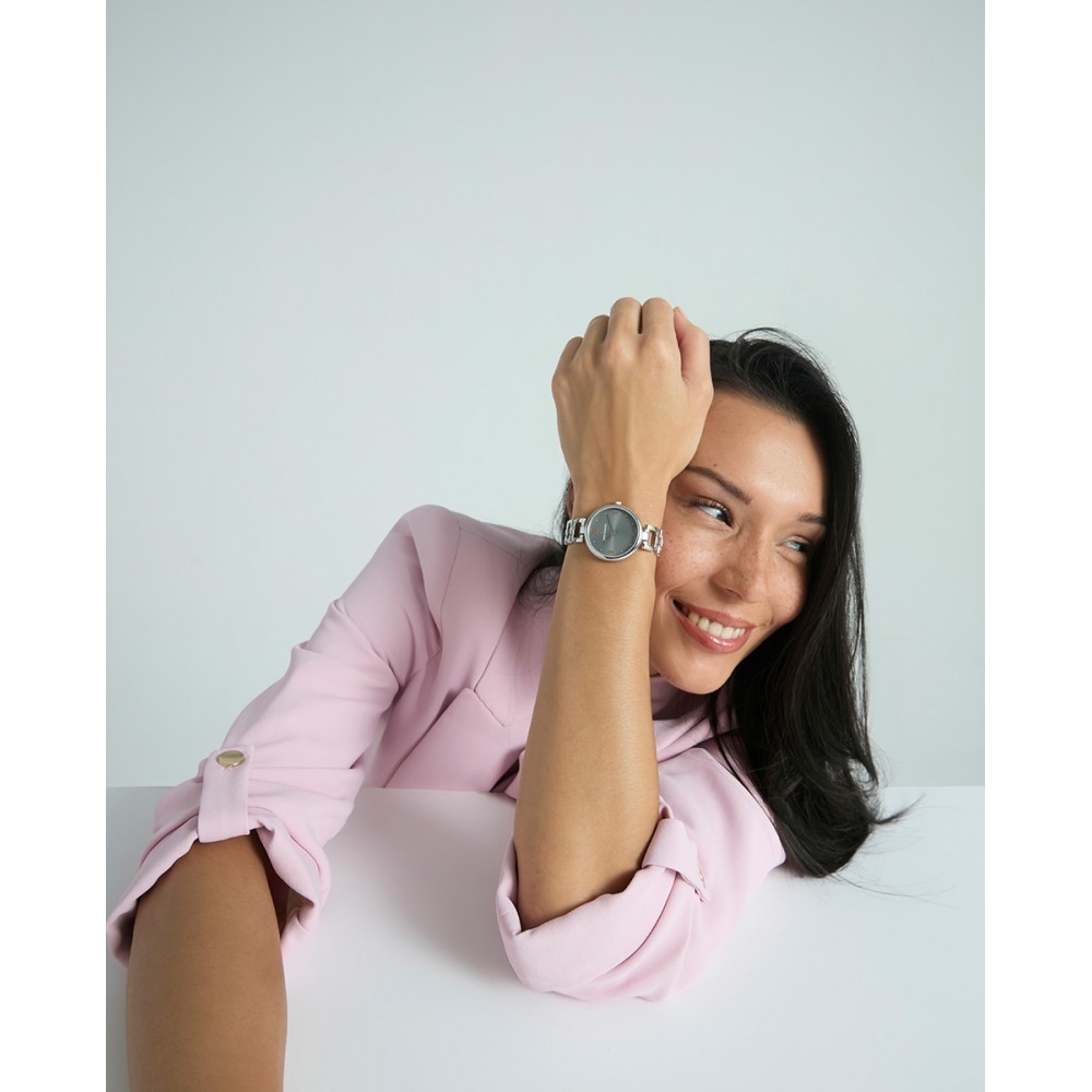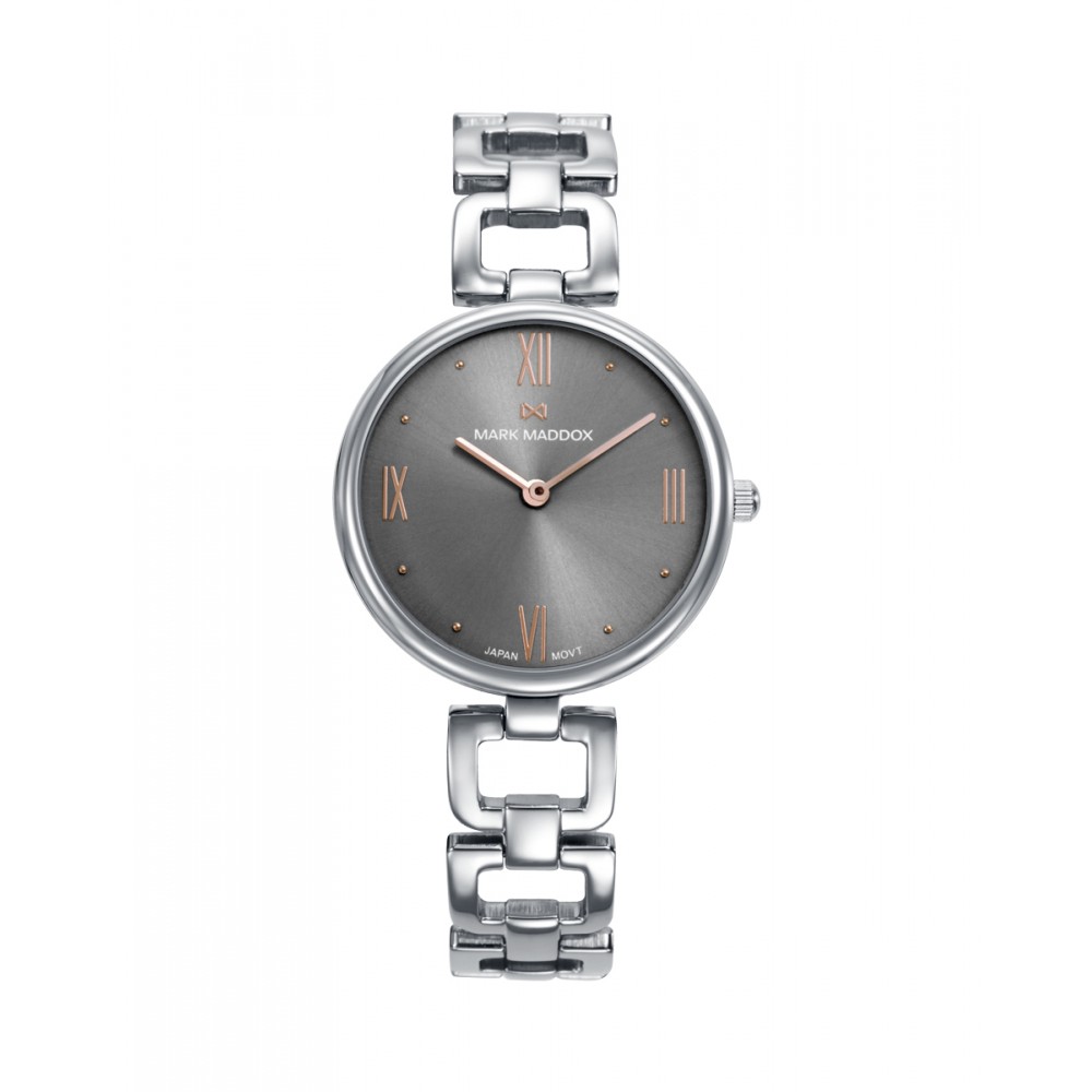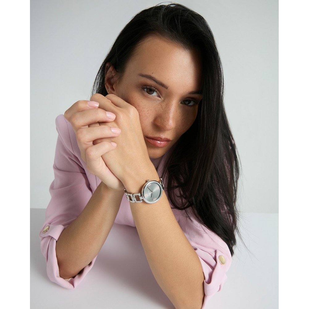 Diseño minimalista y sofisticado para este reloj de mujer de dos agujas, con esfera gris realzada por índices y números romanos. La caja y el brazalete de acero ofrecen durabilidad, mientras que las agujas en color Ip rosa aportan un delicado contraste. Cristal mineral que protege su mecanismo y garantiza una lectura precisa en cualquier momento.