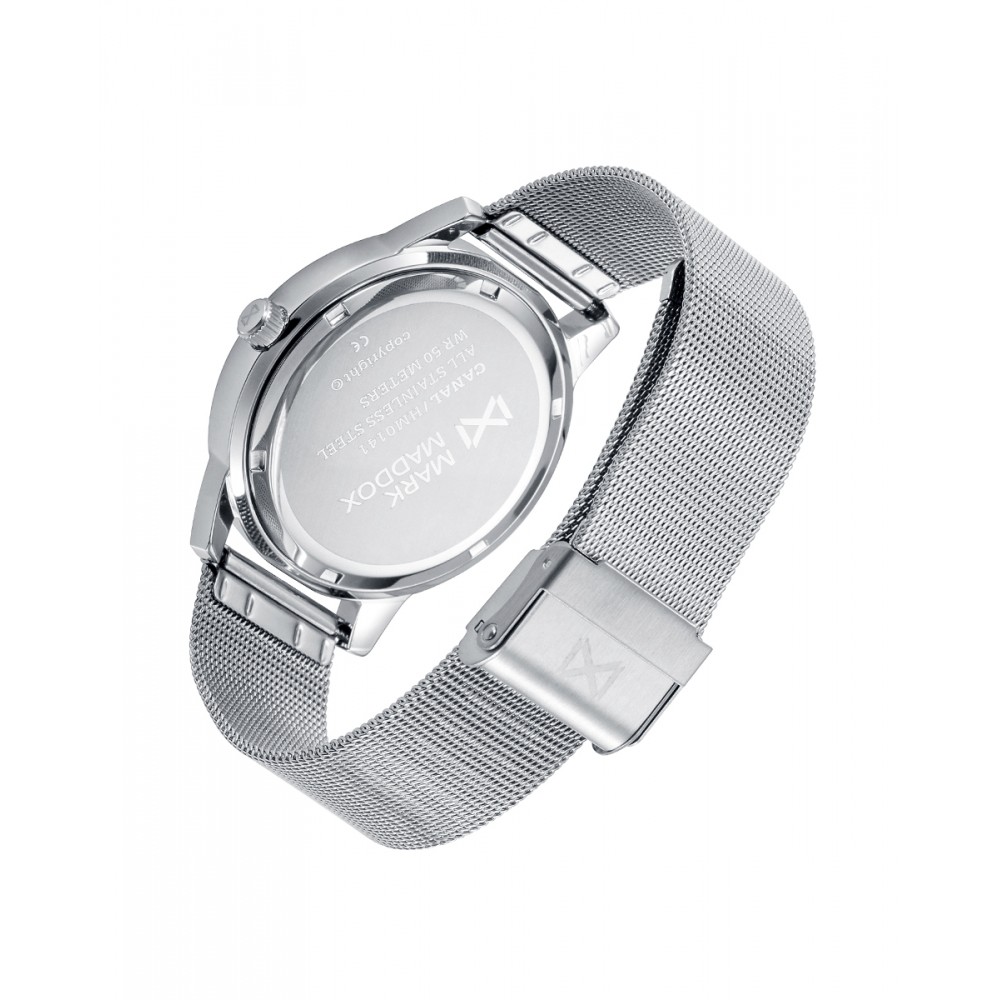 Reloj Hombre Mark Maddox Canal, tres agujas, caja bicolor con bisel en dorado y malla milanesa de acero, esfera verde.