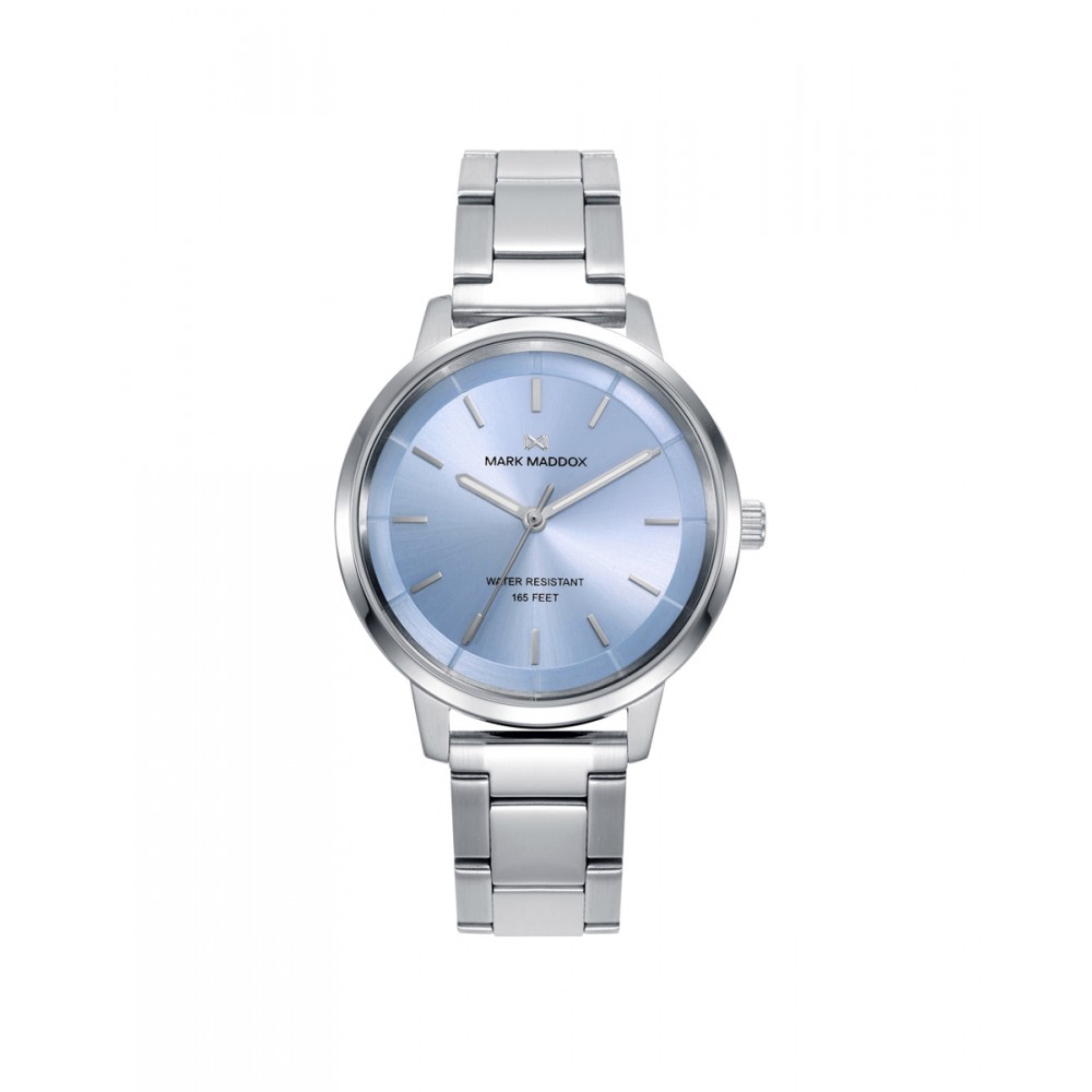 La esfera azul, profunda y serena, de este reloj está adornada con índices en color plata que destacan sobre el fondo. Las agujas horarias en color plata se suman a la armonía del diseño, creando una pieza coherente y atractiva. Este reloj de tres agujas es perfecto para la mujer que busca un accesorio confiable y con estilo, capaz de complementar cualquier atuendo y adaptarse a diferentes ocasiones.