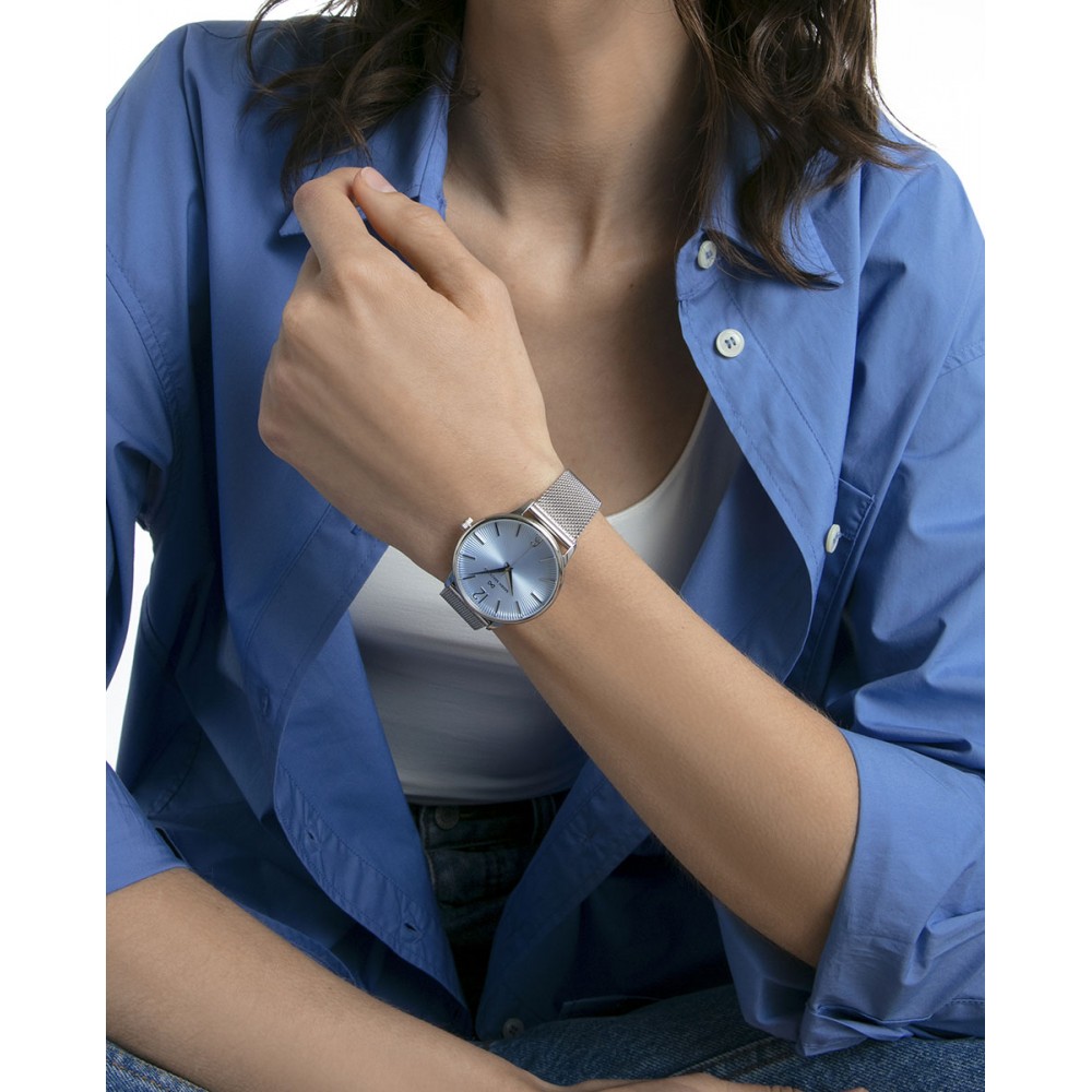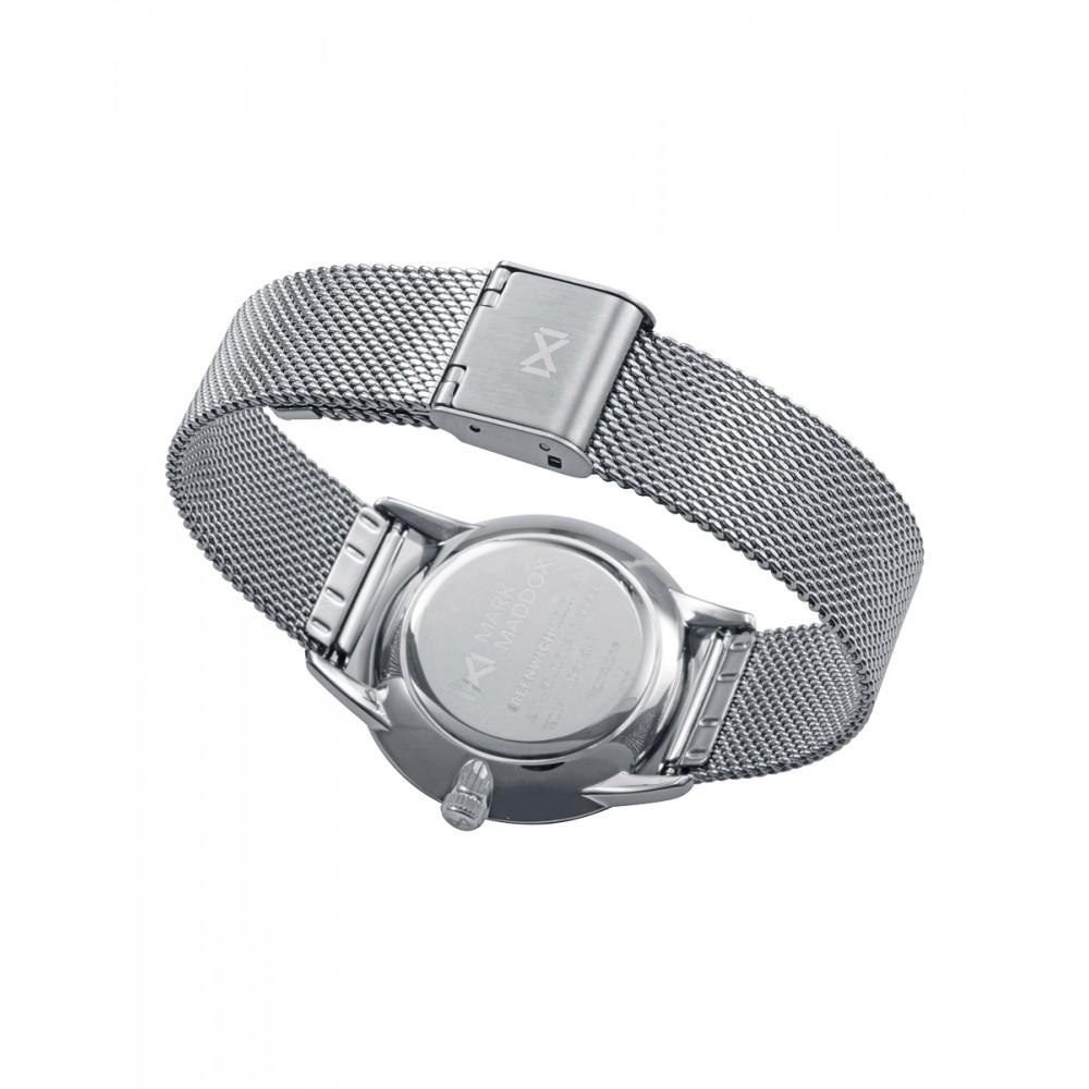 Frescura y elegancia definen este reloj femenino tres agujas con caja y malla milanesa en acero. Su esfera azul claro, decorada con índices y números árabes, combina a la perfección con agujas horarias plateadas que garantizan fácil lectura. Equipado con cristal mineral resistente, este modelo Mark Maddox aporta estilo, comodidad y una esencia moderna ideal para lucir en cualquier ocasión.