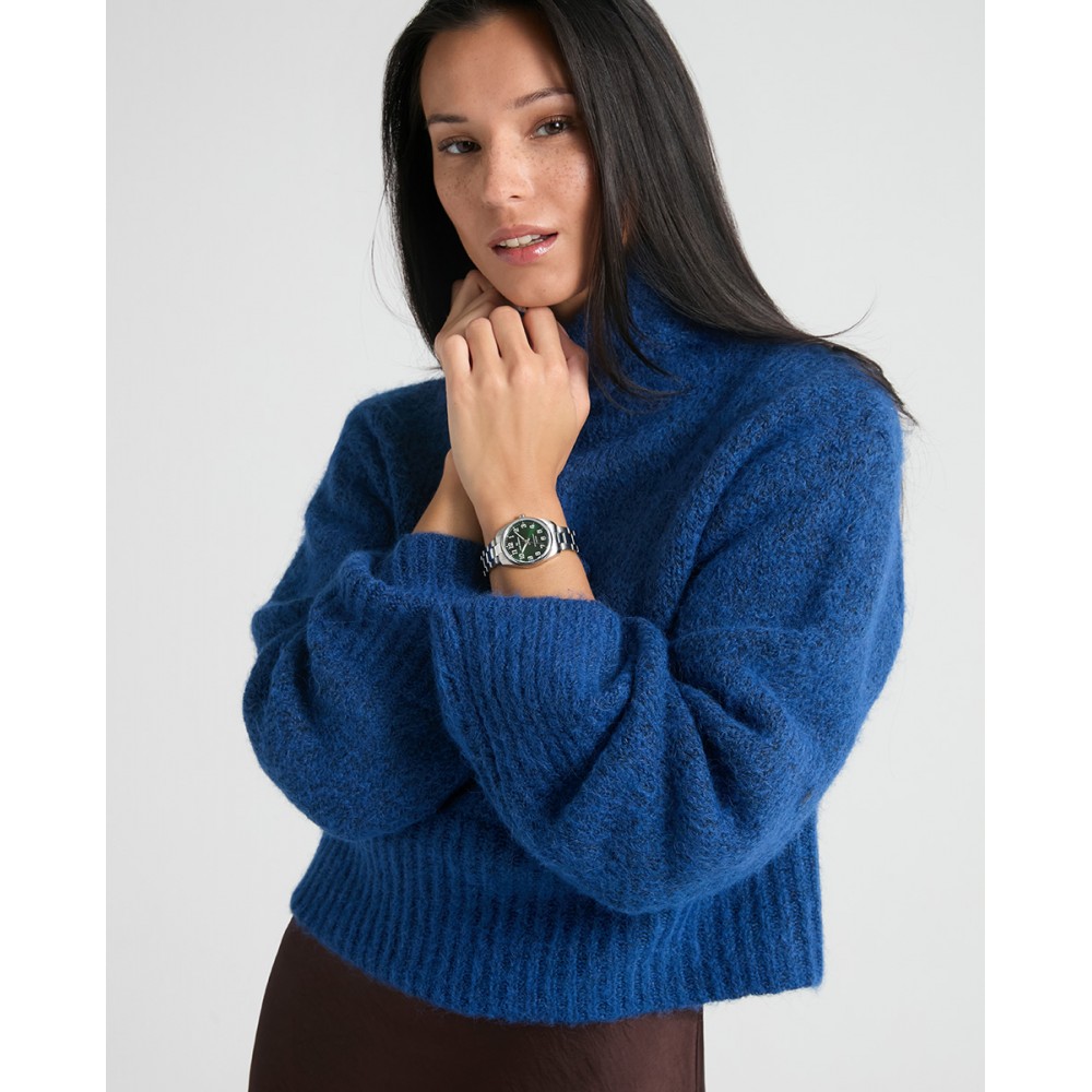 Elegancia y frescura se encuentran en este reloj de mujer de tres agujas, con esfera verde y números árabes que destacan con sutileza sobre su brazalete de acero. La caja resistente a 5 ATM y el cristal mineral protegen su mecanismo, mientras que las agujas en color plata garantizan una lectura clara. Un complemento versátil que aporta estilo y funcionalidad a tu día a día.