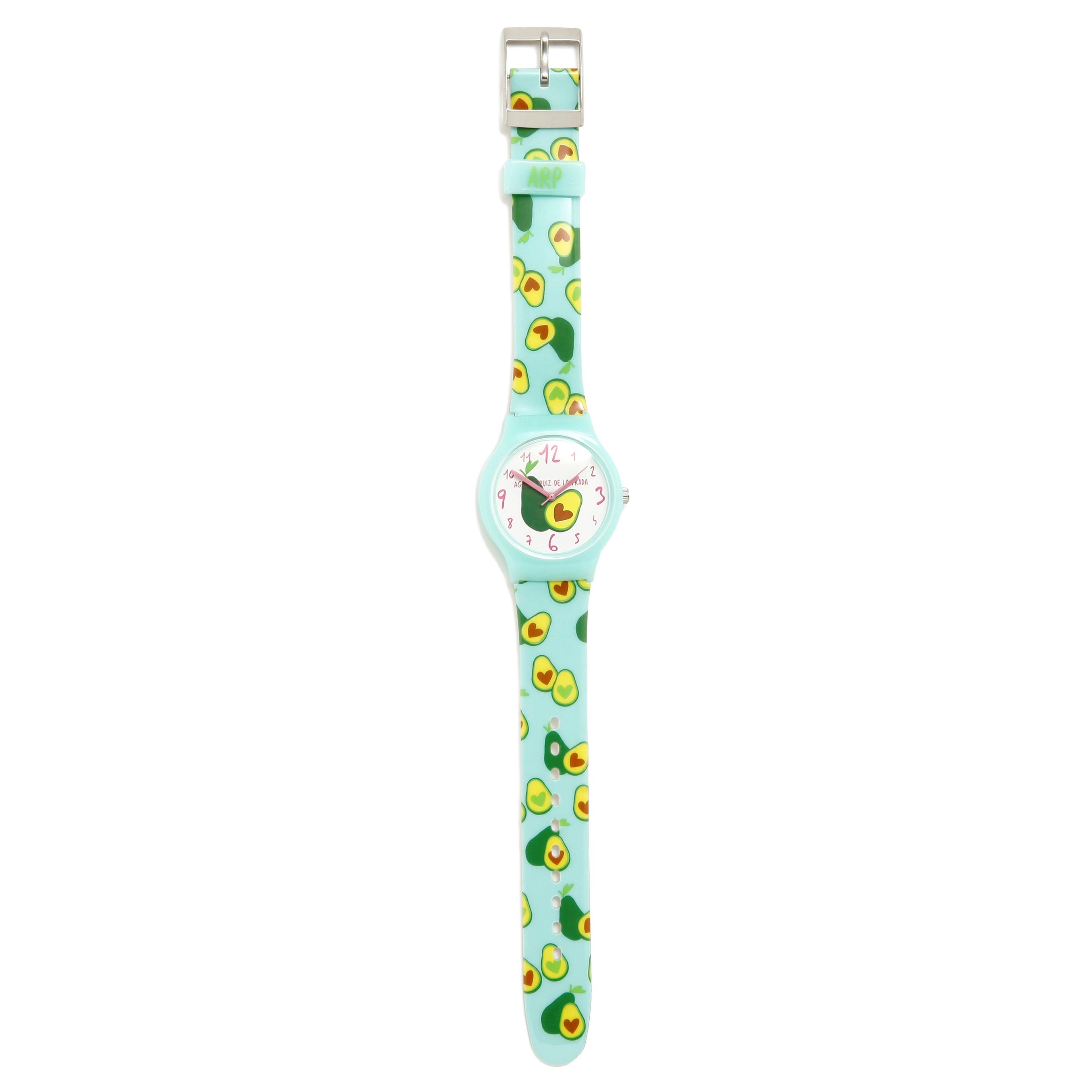 Reloj con caja de plástico y tapa de acero. Correa sándwich-band de PVC multicolor, con