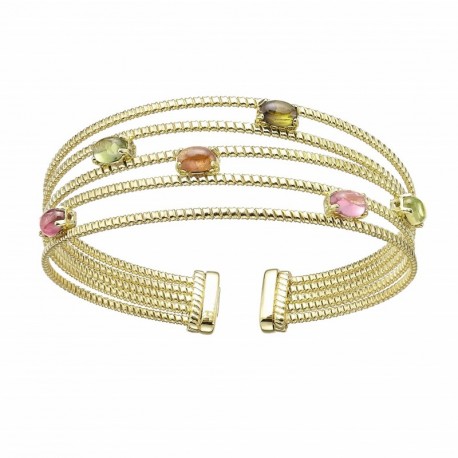 Brazalete de la marca Duran Exquse fabricado en plata 1ª ley chapada en oro amarillo y 6 turmalinas de diversos colores.
