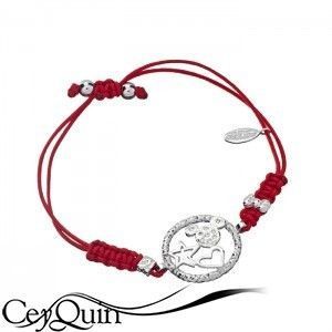 - Pulsera fabricada en hilo trenzado rojo, y plata rodinada con circonitas.