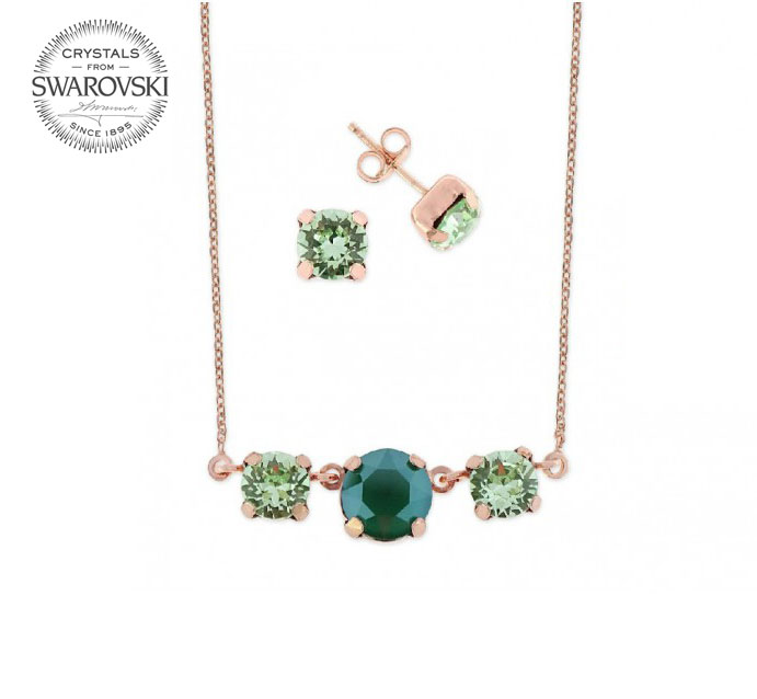 Conjunto de la marca Liska fabricado en plata 1ª ley bañada en oro rosa y cristales Swarovski de color verde.