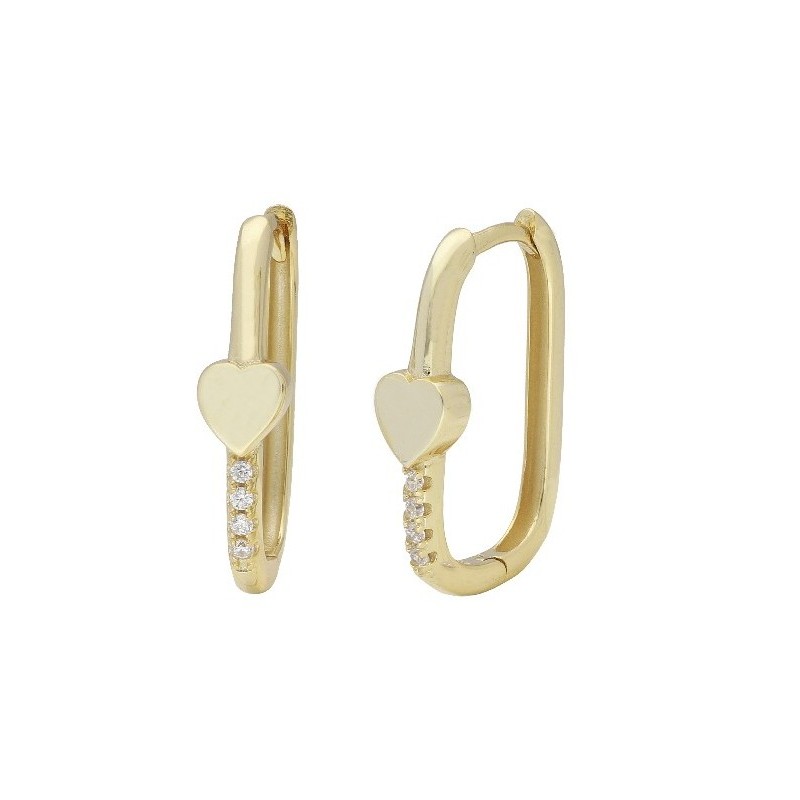 Pendientes de plata bañada en oro y circonitas en forma de aro cuadrado con un corazón.