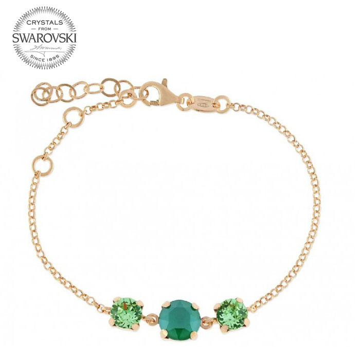 Pulsera de la marca Liska fabricada en plata 1ª ley bañada en oro rosa y cristales Swarovski de color verde.