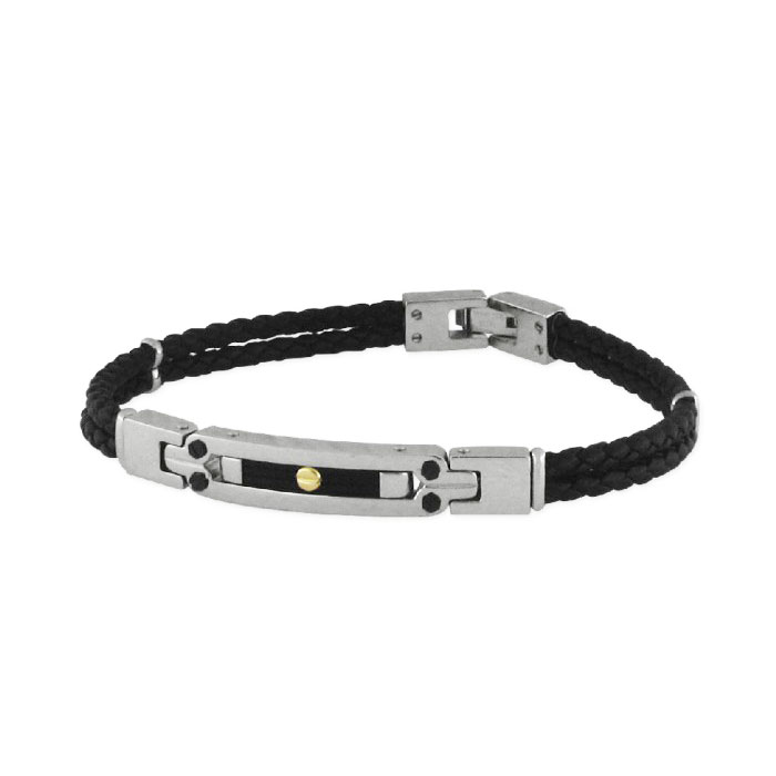 Pulsera de la marca Liska fabricada en acero inoxidable, oro y cuero.