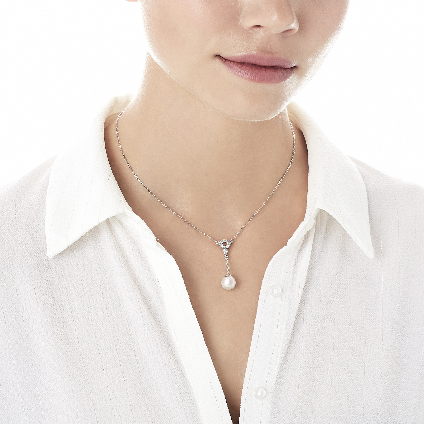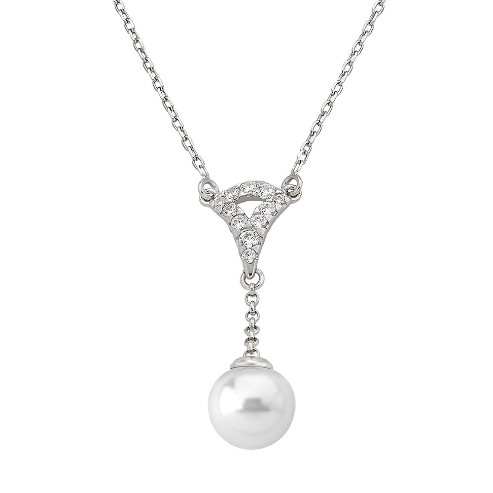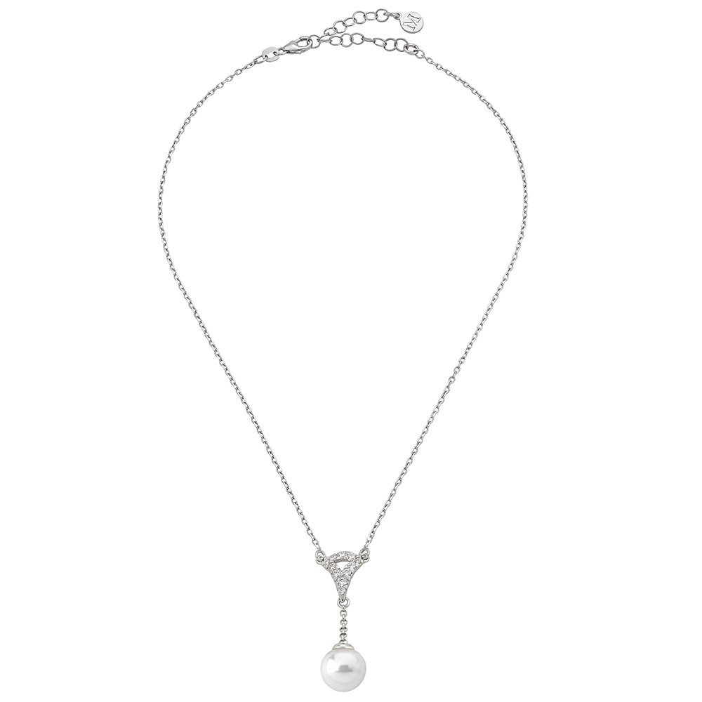 Inspirado en la joyería fina este delicado colgante evoca un glamour sofisticado. El diseño combina circonitas transparentes en pavé, perla blanca redonda Majorica y baño de rodio: una combinación sofisticada y ponible, perfecta para regalar.