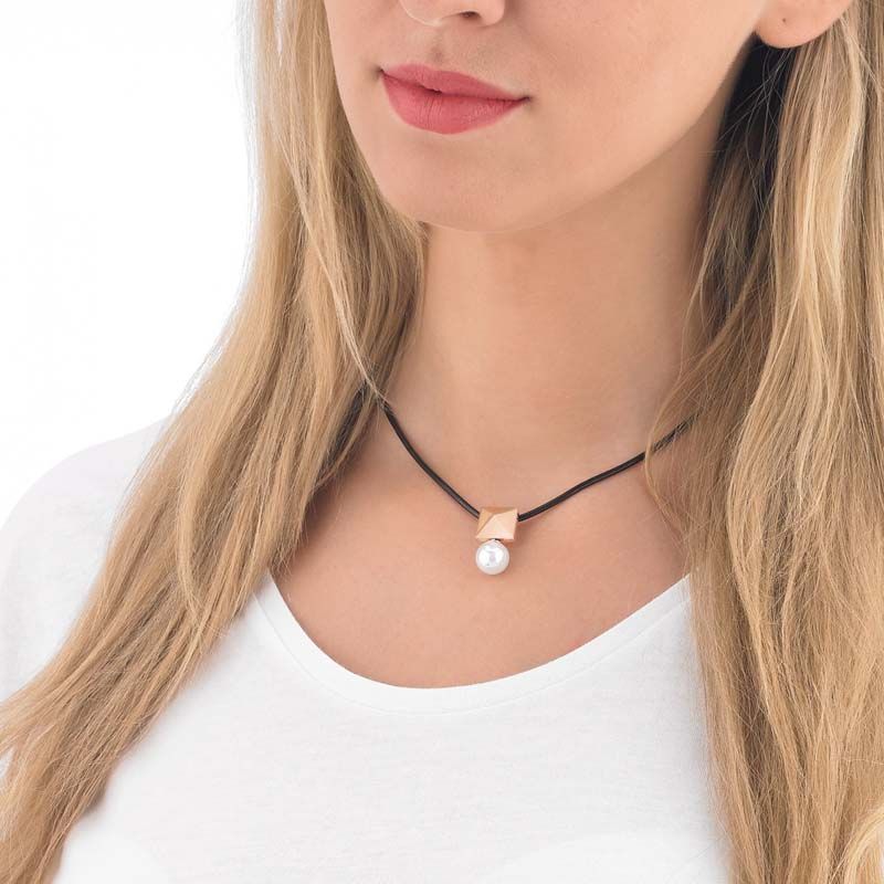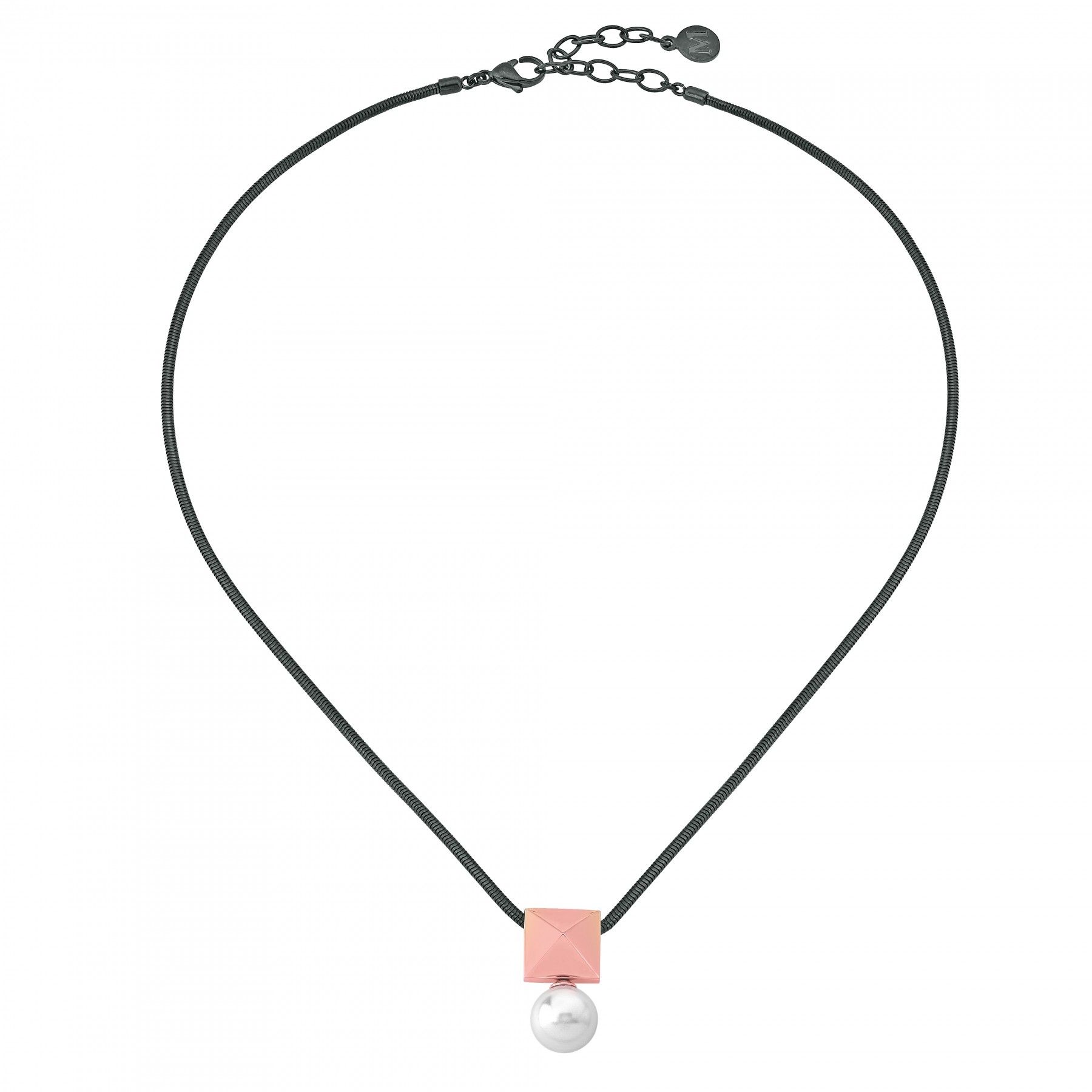 - Colgante fabricado en acero Ip negro y rosé.