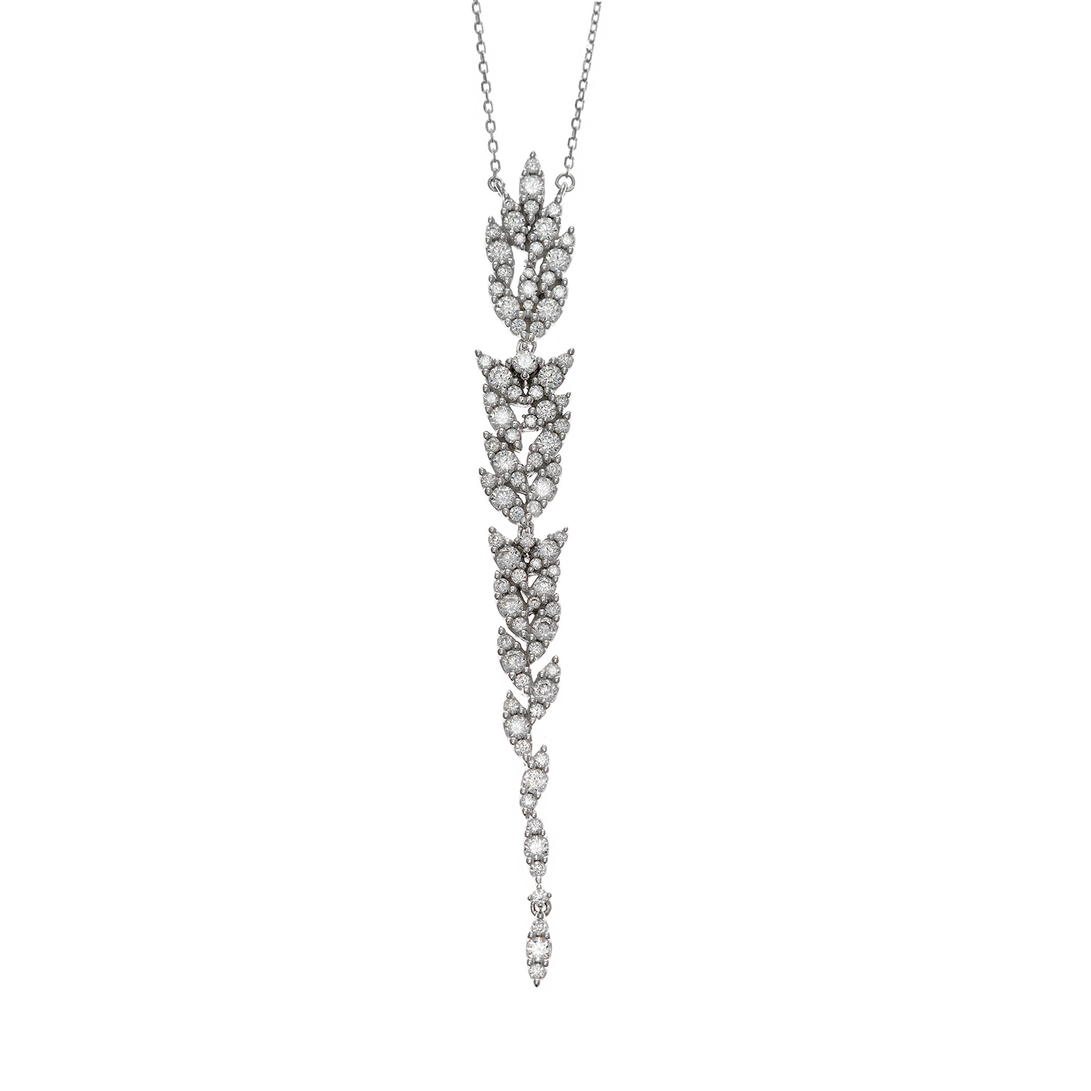 collar plata rodio cascada de hojas circonitas blancas 40+5cm