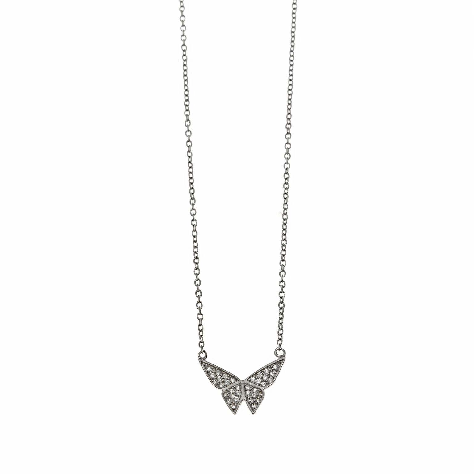 collar plata rodio mariposa de circonitas blancas 42+3 cm