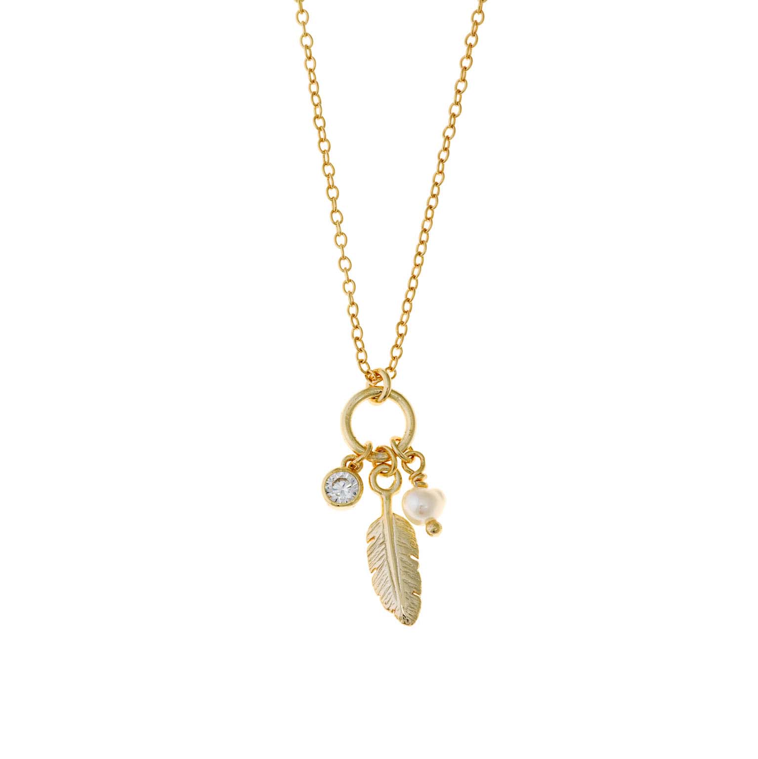 collar plata chapado dorado freswater pearl, hoja y circonita blanca 40+3 cm