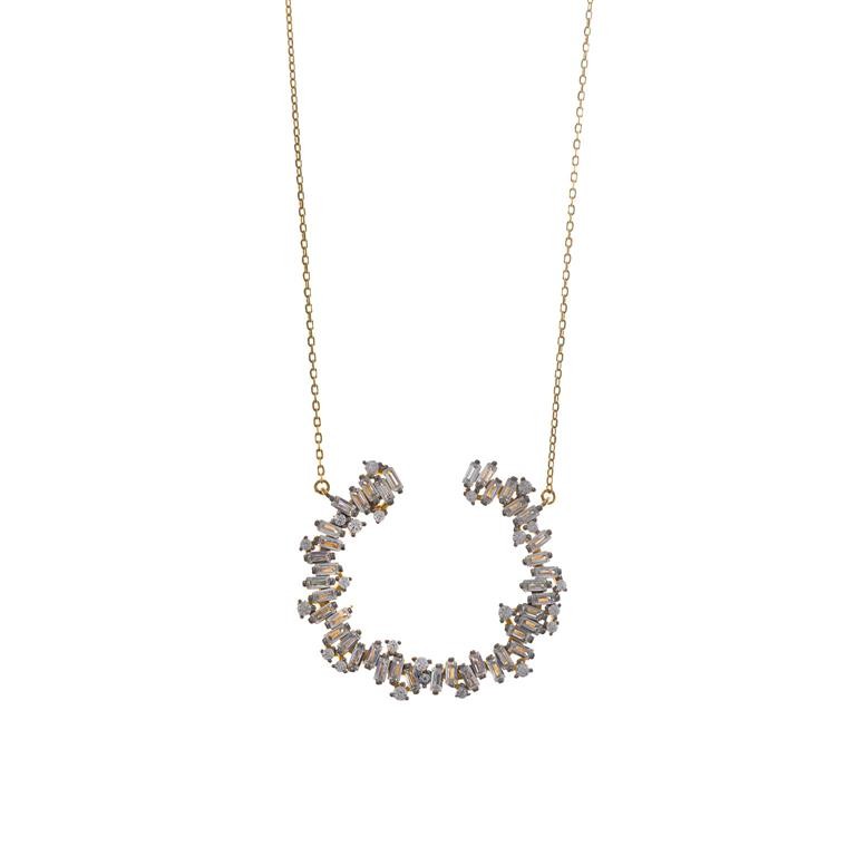 collar plata chapado dorado circulo circonitas blanca baguets y brillantes bajo chapado rutenio