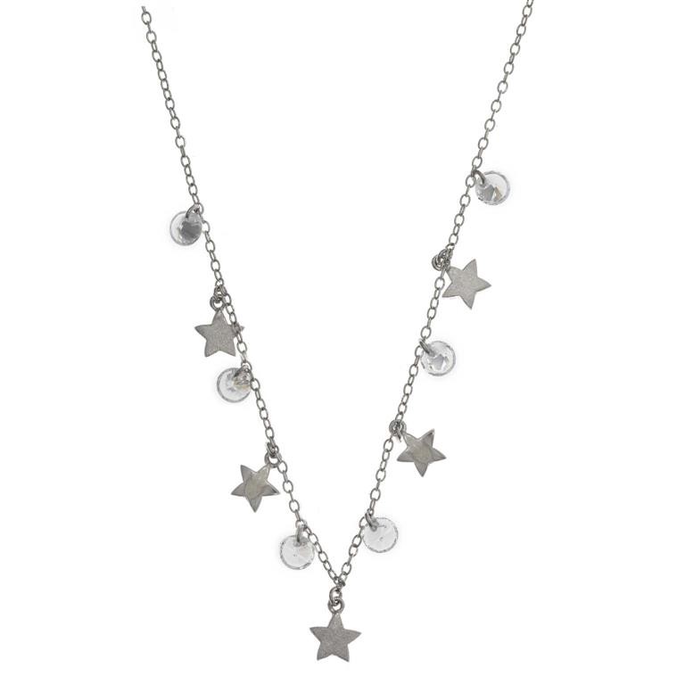 collar plata rodio estrellas y circonitas blancas 40+3cm