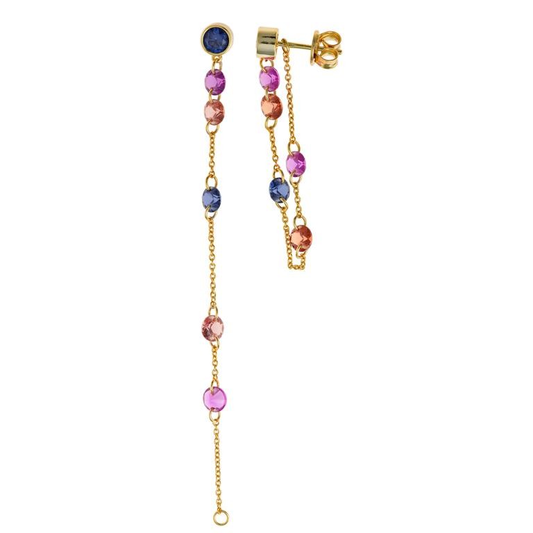 pendientes plata chapado dorado chaton cadena circonitas