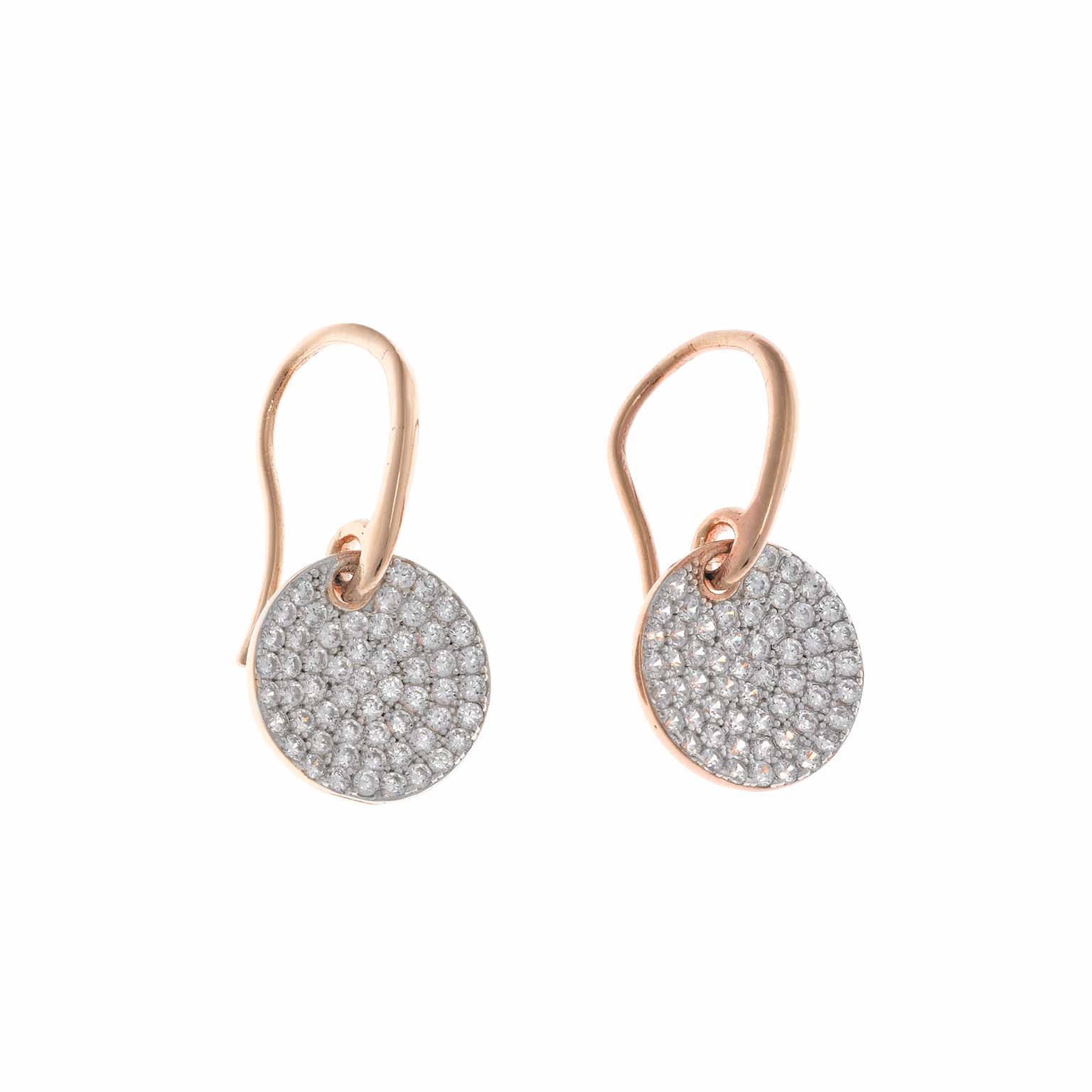 pendientes plata chapado rosa redondos micro pave circonitas blancas sobre rodio