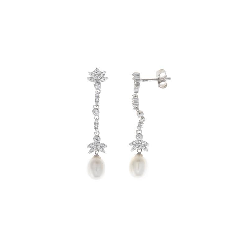 pendientes plata rodio filigrana circonitas blancas perla