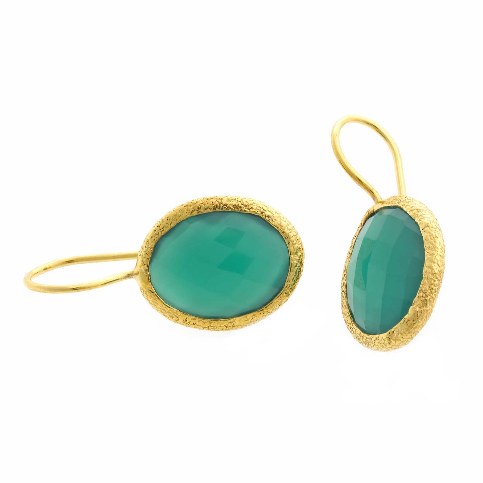 pendientes plata chapado dorado ovales onyx verde gancho