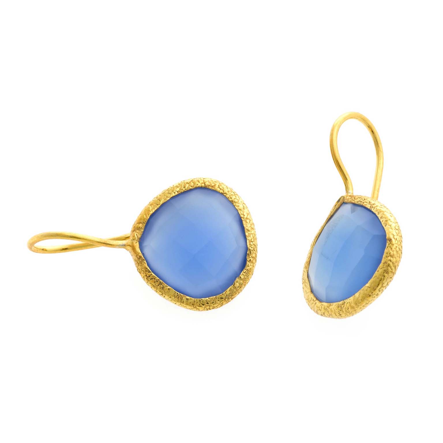pendientes plata chapado dorado triangulo calcita azul gancho