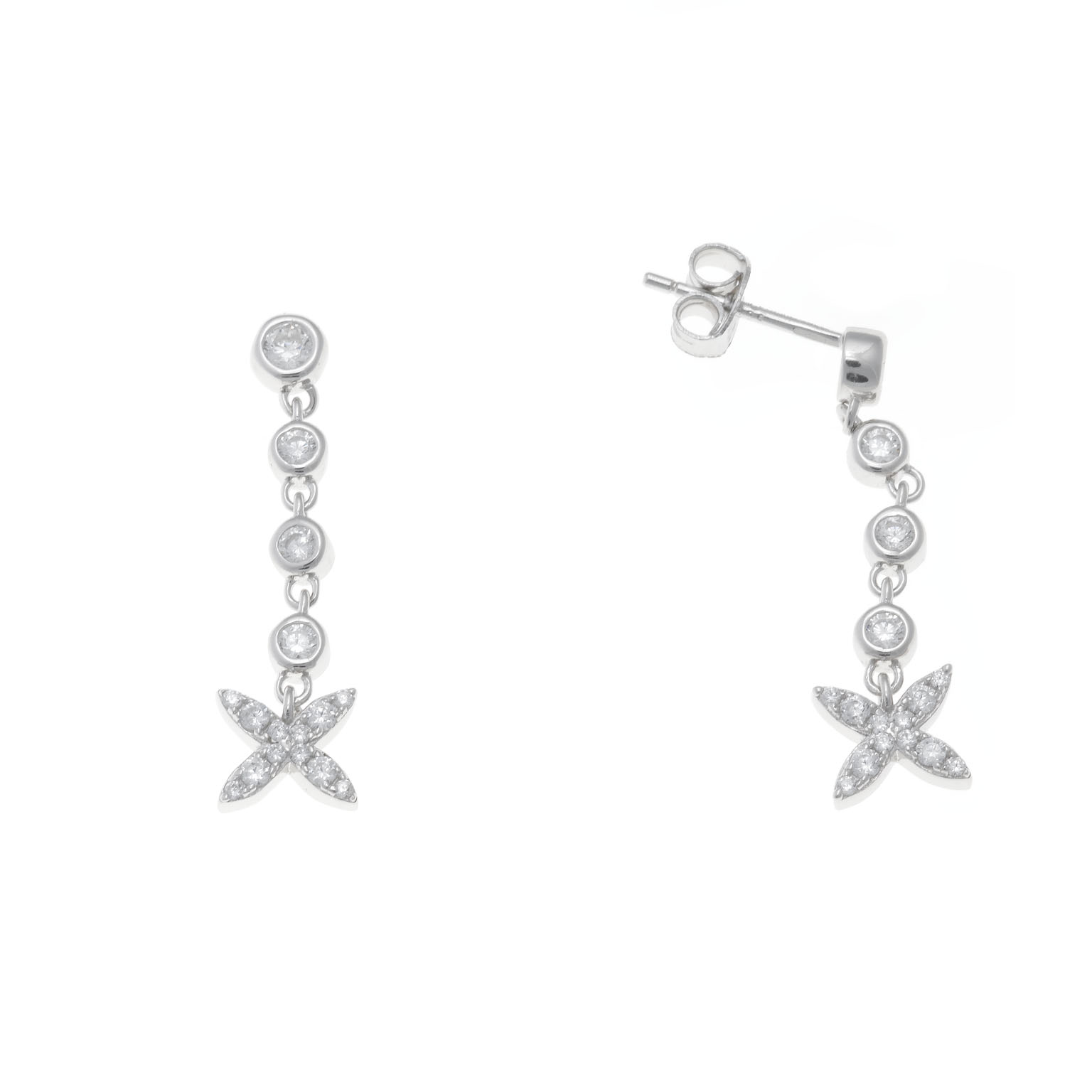 pendientes plata rodio estrella chatones circonitas blancas