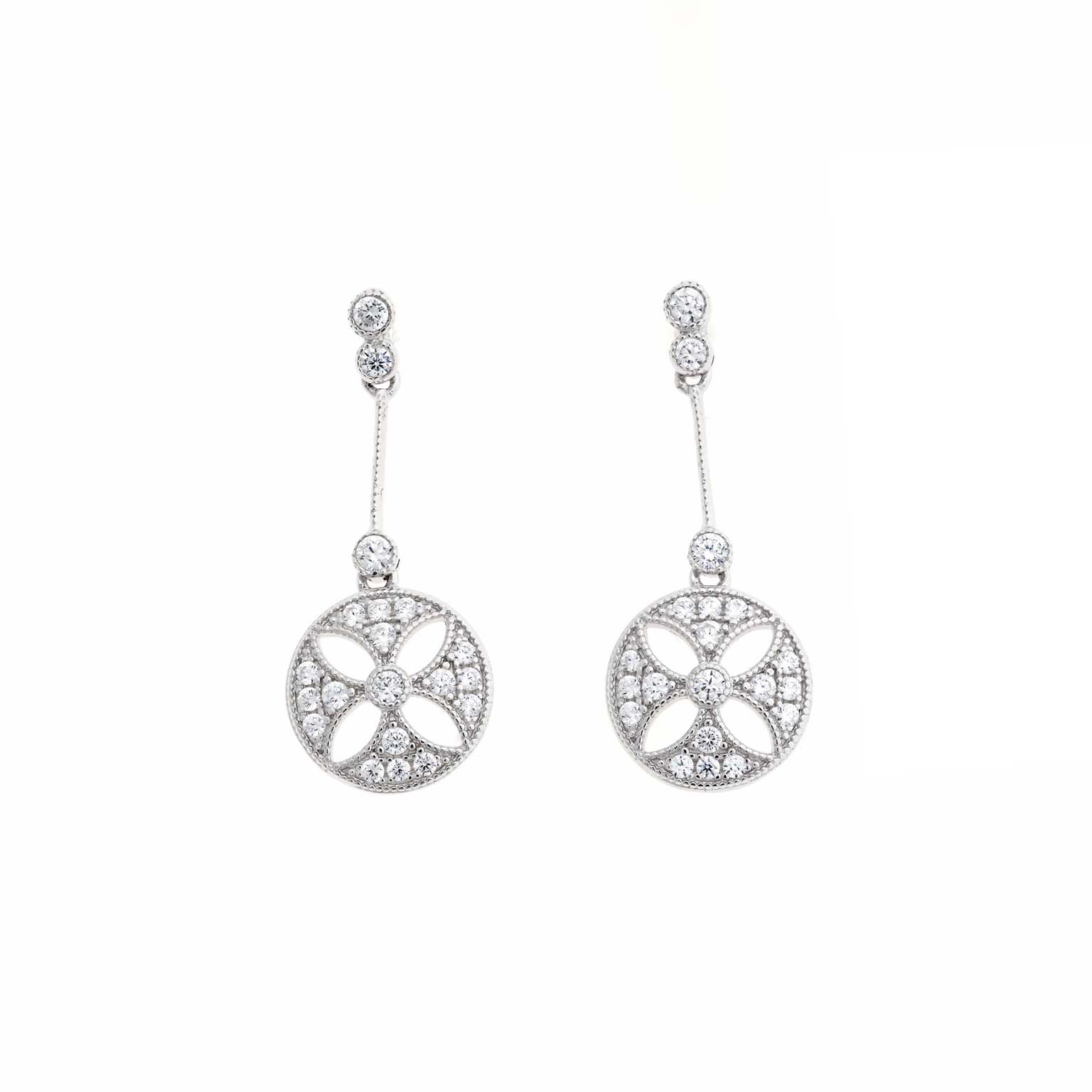pendientes plata rodio circulo y barrita circonitas blancas