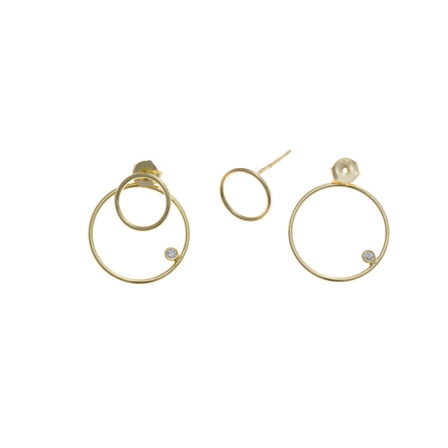 pendientes plata chapado dorado dos aros chaton circonita blanca