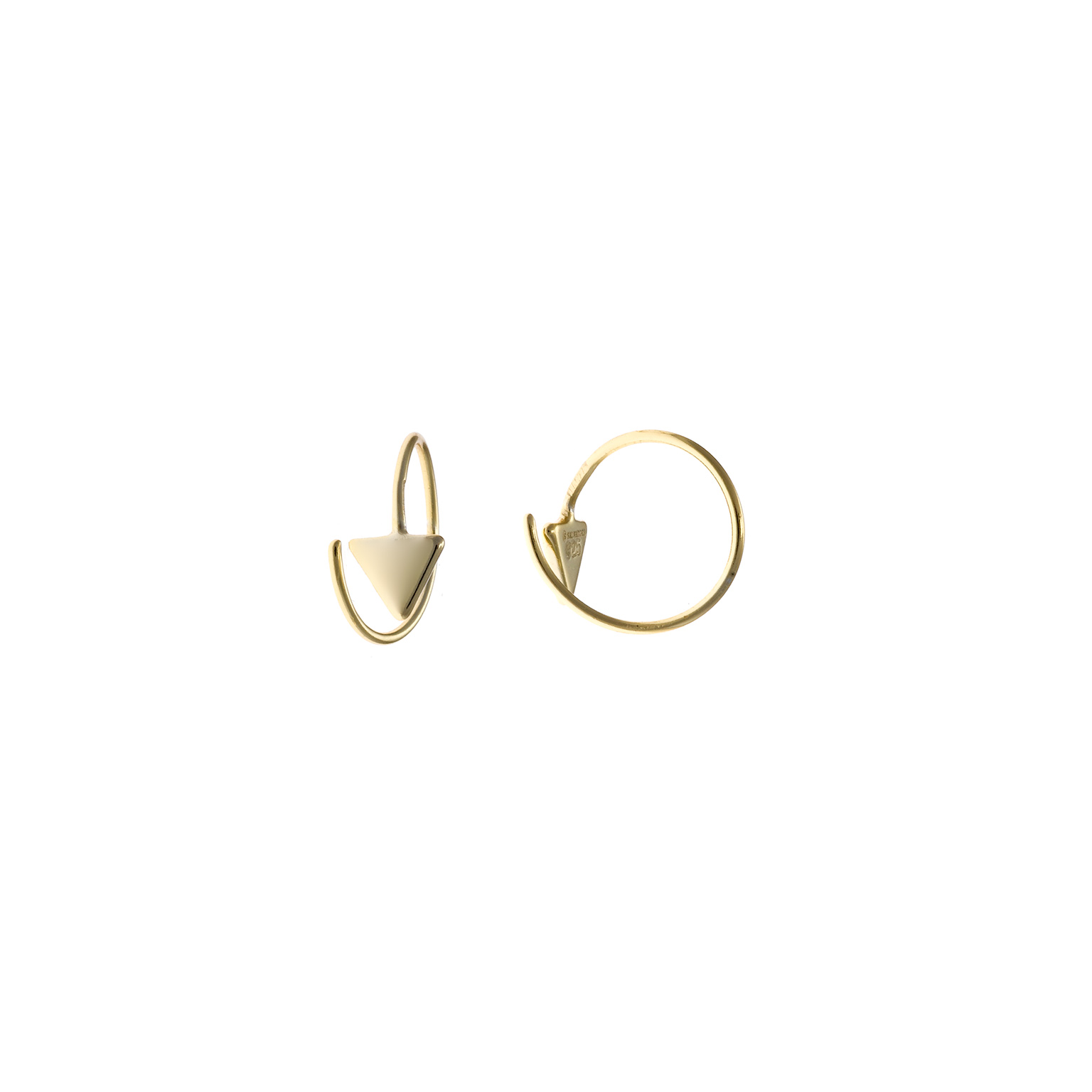 pendientes plata chpado dorado aro triangulo 1cm