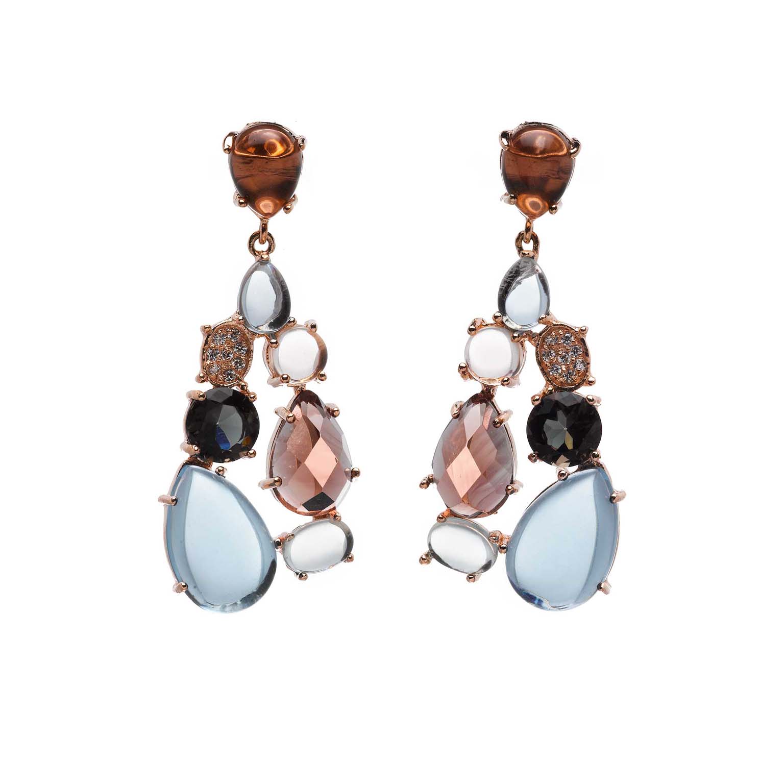 pendientes plata chapado rosa circonitas blancas y cristales multicolor