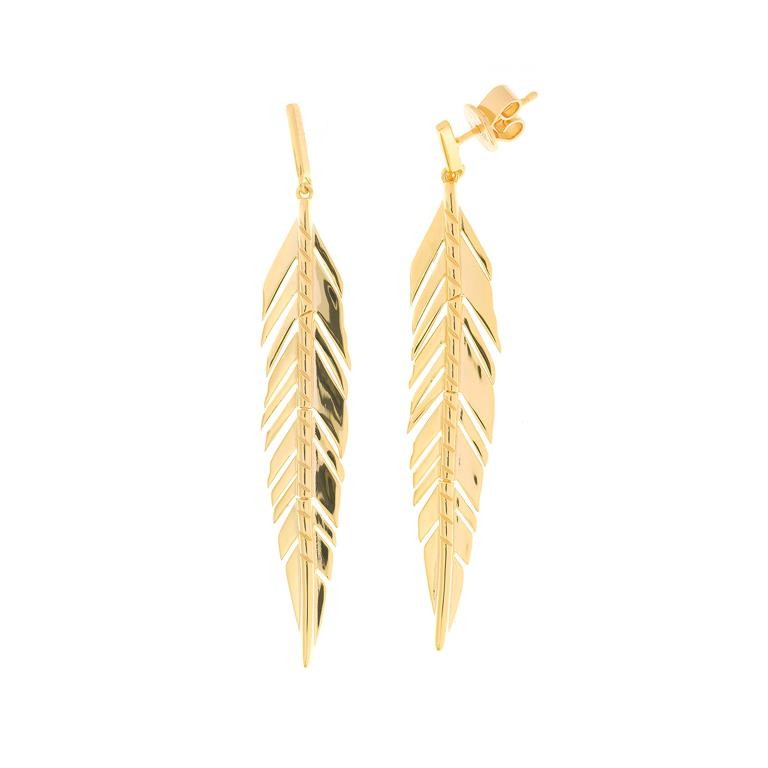 pendientes plata chapado dorado pulido brillante plumas