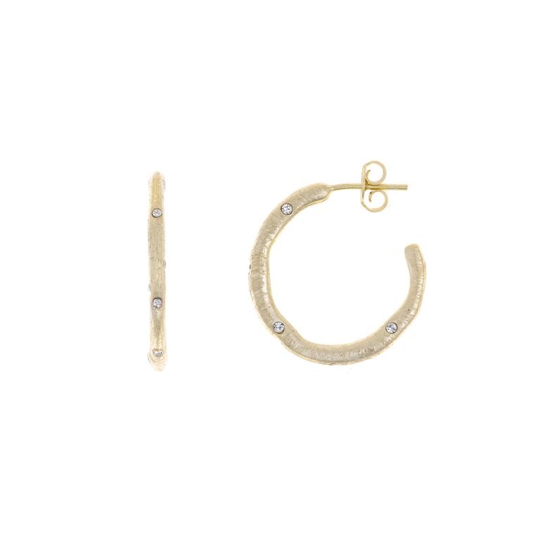 pendientes plata chapado dorado satinado aro abstracto circonitas blancas