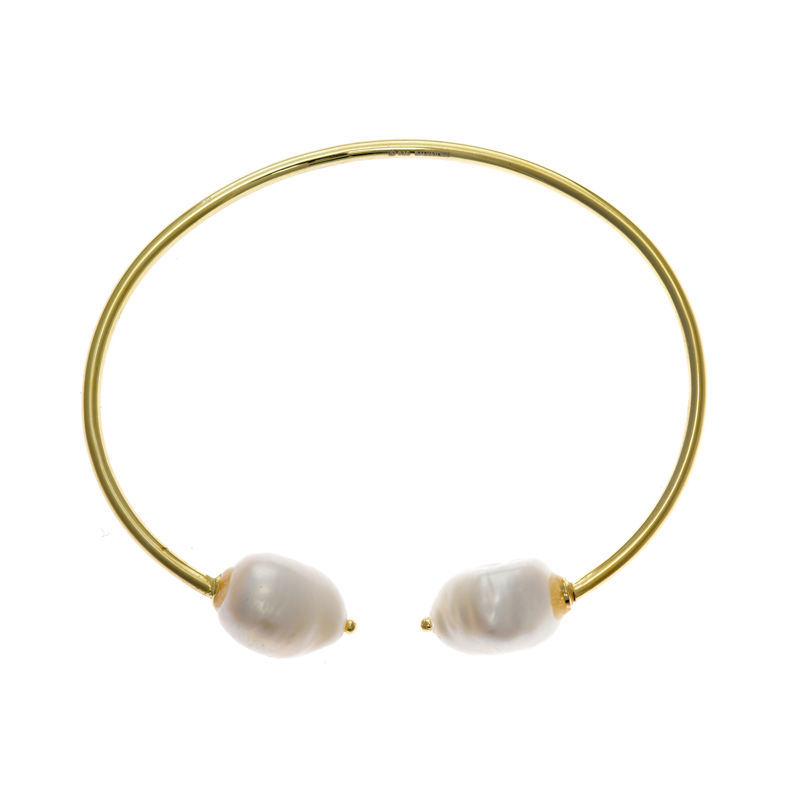 pulsera caÑa plata chapado dorado dos perlas barrocas