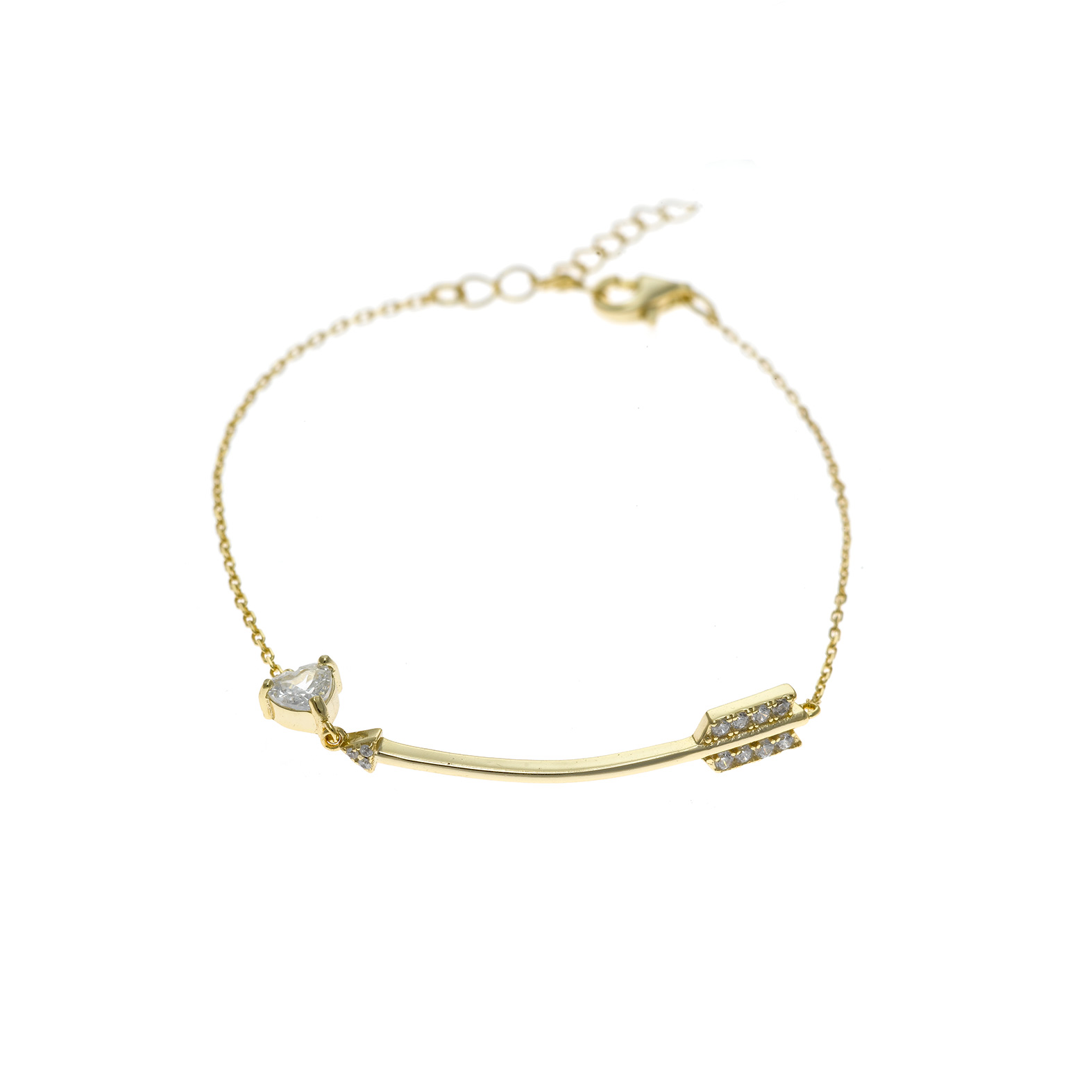 pulsera plata chapado dorado flecha con corazon circonitas blanca 16+3cm