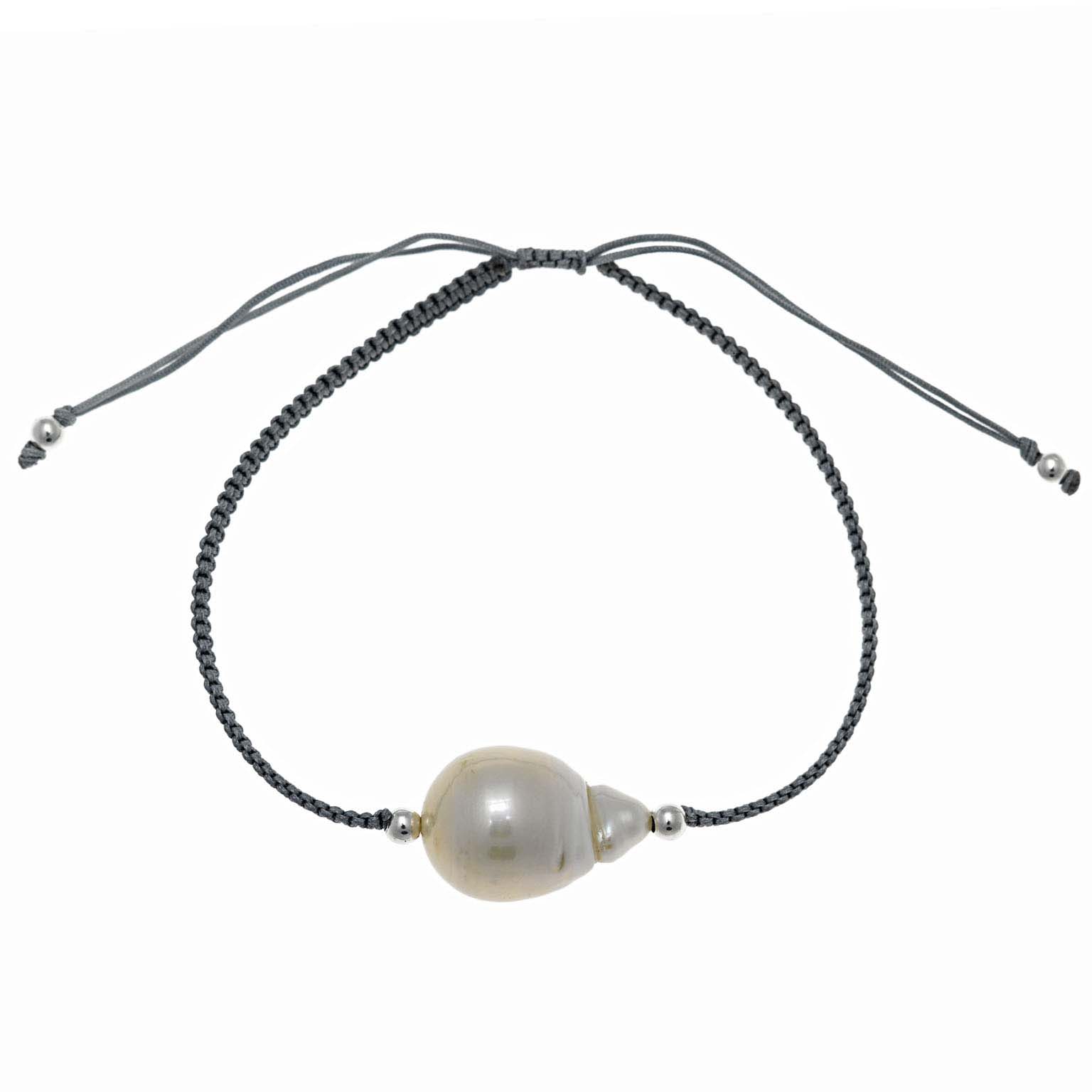 pulsera plata rodio hilo gris perla barroca 13mm ajustable 5,5cm