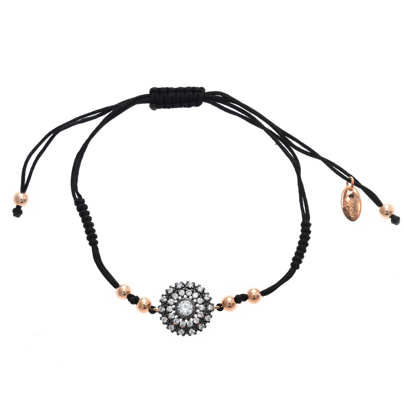pulsera plata chapado rosa circulo circonitas blancas sobre rutenio hilo negro ajustable