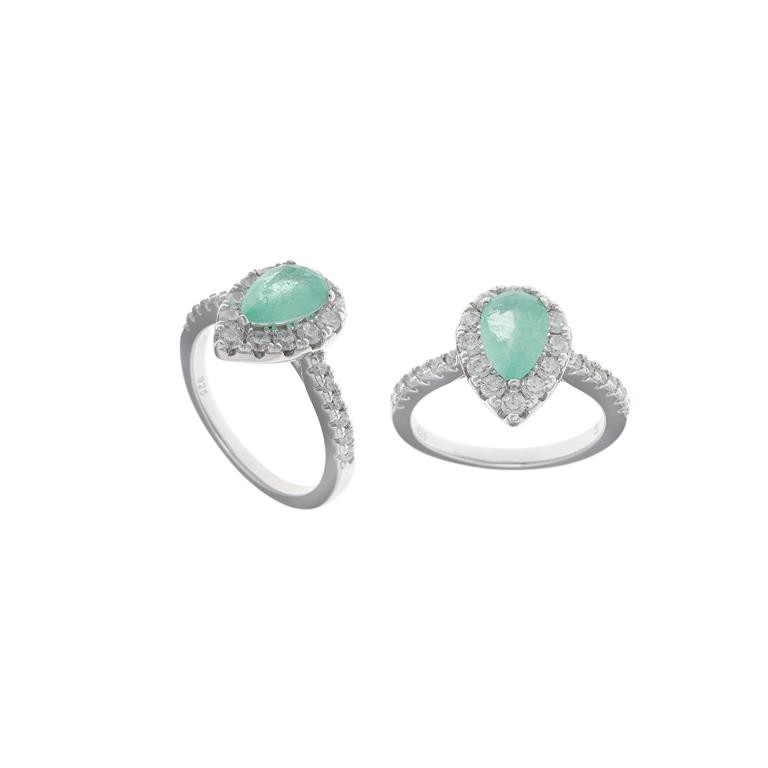 sortija plata rodio cristal verde menta hielo