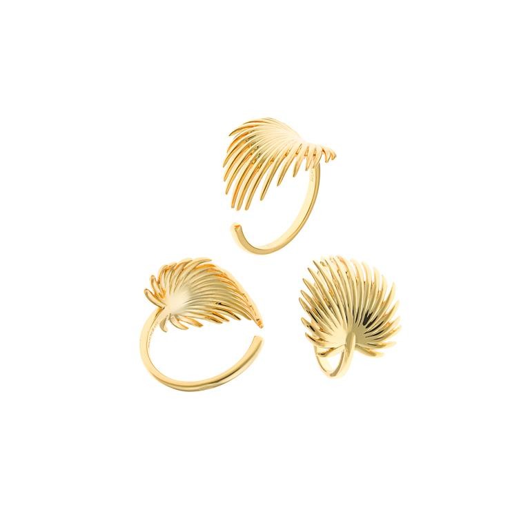 Sortija plata chapado dorado hoja excelsa.