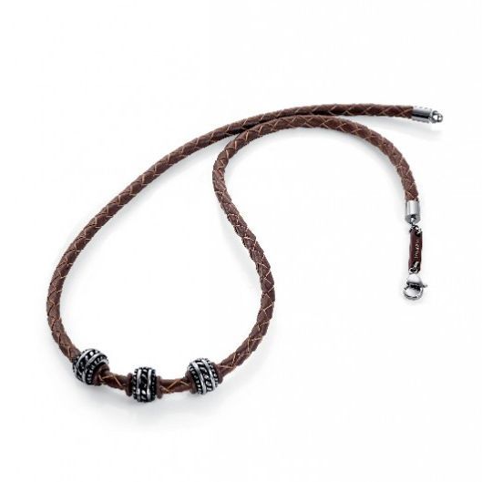 Colgante Viceroy Fashion para hombre fabricado en cuero trenzado marrón y acero inoxidable.