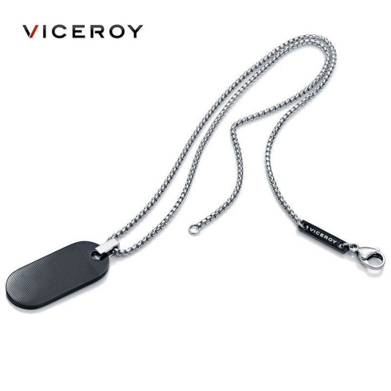 Chapa de acero Ip negro de 16mm x 34mm, Viceroy para caballero. Longitud de cadena 50cm.