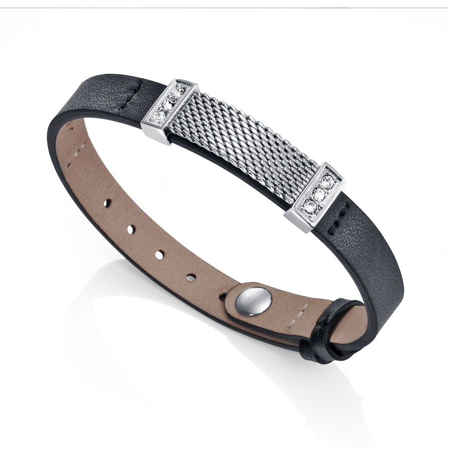 Pulsera Viceroy Fashion fabricada en cuero negro , y acero inoxidable.