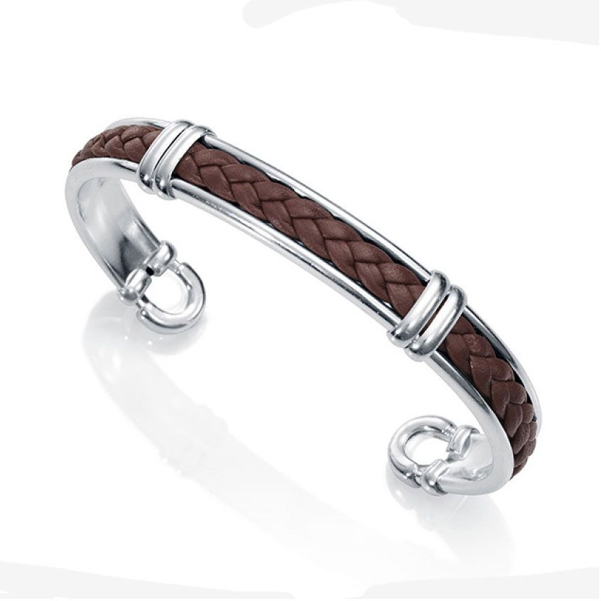 Pulsera Viceroy fabricada en metal chapado y cuero trenzado marrón.