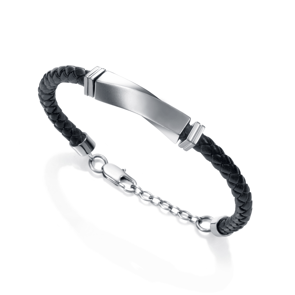 Pulsera Viceroy fabricada en acero inoxidable y cuero negro.