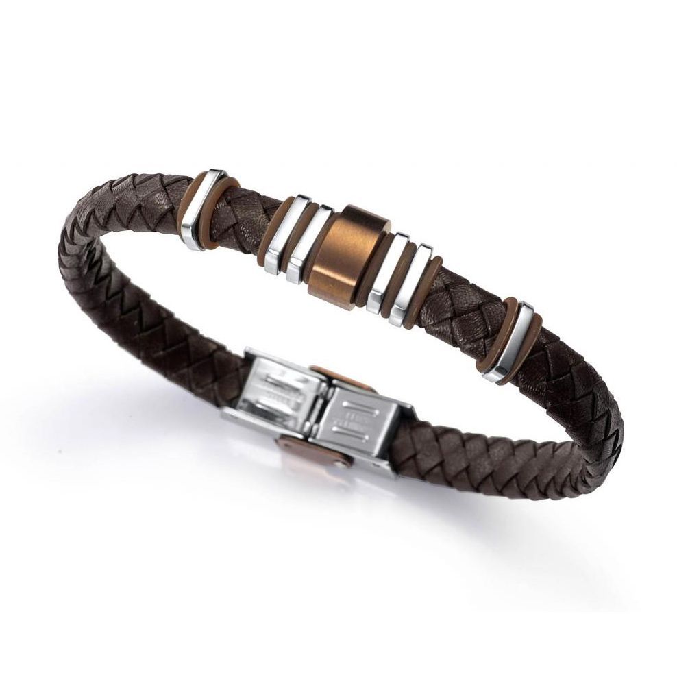 Pulsera Viceroy Fashion para hombre fabricada en cuero trenzado marrón , y acero inoxidable Ip marrón.